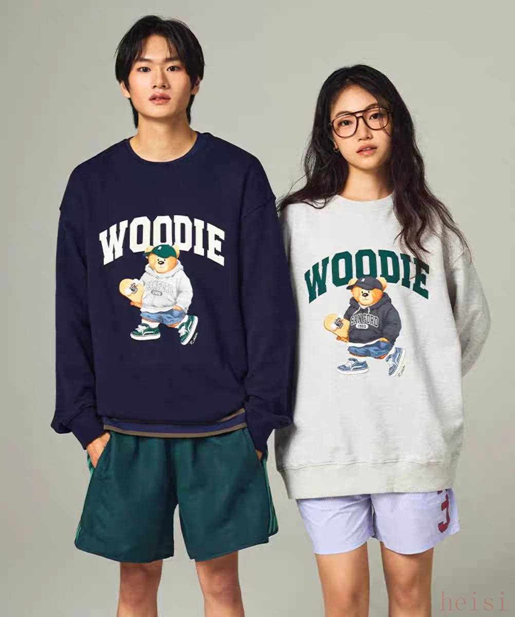 【SPAO 2025年秋季休闲日常宽松小熊套头卫衣】SPAO韩国同款WOODIE小熊卫衣,宽松落肩剪裁;胸前SPAO经典呆萌小熊胶章,奶咖、海军蓝、浅麻灰、深绿四色可选;100%纯棉、魔法纱卫衣,双面磨绒,上手第一秒就“软糯”;带Q弹回弹力,拧麻花也不变形,机洗N次依旧挺括。