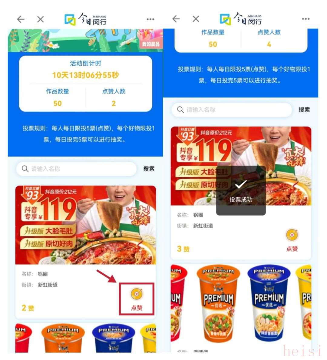 2.找到“春申美好生活季”——闵行好物,即可为心仪好物投票。