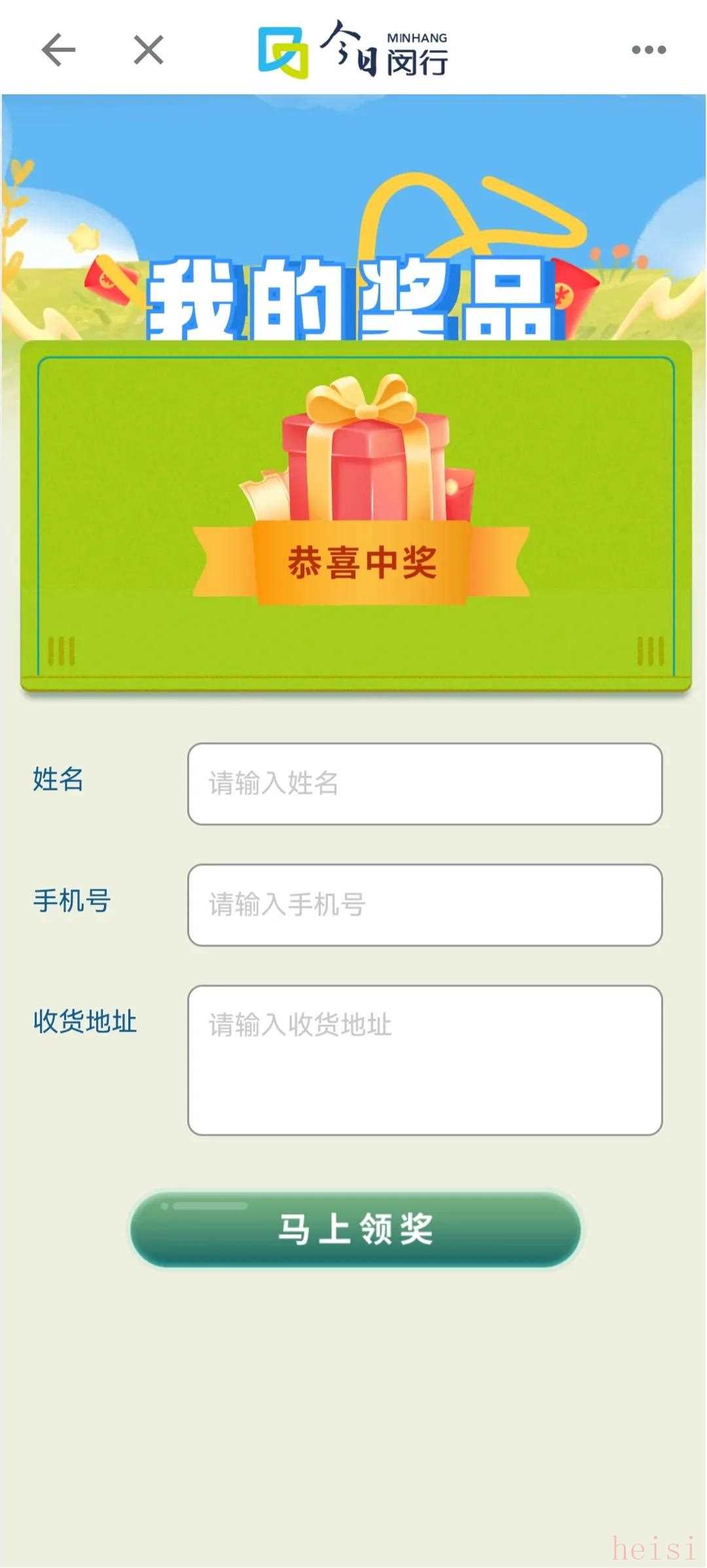 及时填写中奖信息哦~
