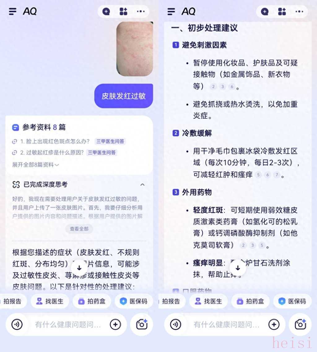 传统健康搜索是“一问一答”的静态模式,而AQ试图将其重塑为“多轮追问”的动态咨询。当用户描述模糊的症状时,AQ能够像真人医生一样进行追问,引导用户提供必要信息,从而给出更具针对性的建议 。