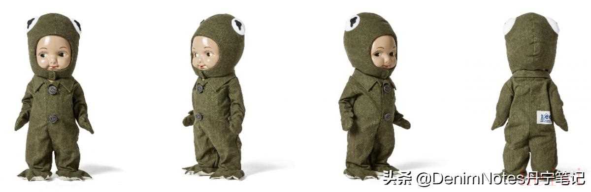 来自日本的READYMADE,是一个大玩升级再造的品牌,擅长将古董军事用具改造成时尚手袋和衣物。其著名的Kermit the Frog玩偶,用怀旧美军衣物布料制成,至今仍大受潮流爱好者追捧。设计师细川雄太拥有的第一条Lee牛仔裤,就是一款双面牛仔裤,这个设计在他心目中留下深刻印象。当他被为Buddy Lee设计服装时,他立时想到将自己为Kermit设计的服装用在Buddy Lee身上,将这个著名吉祥物变身成小青蛙造型。