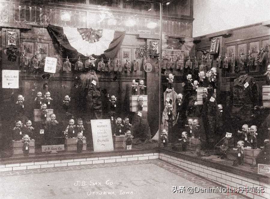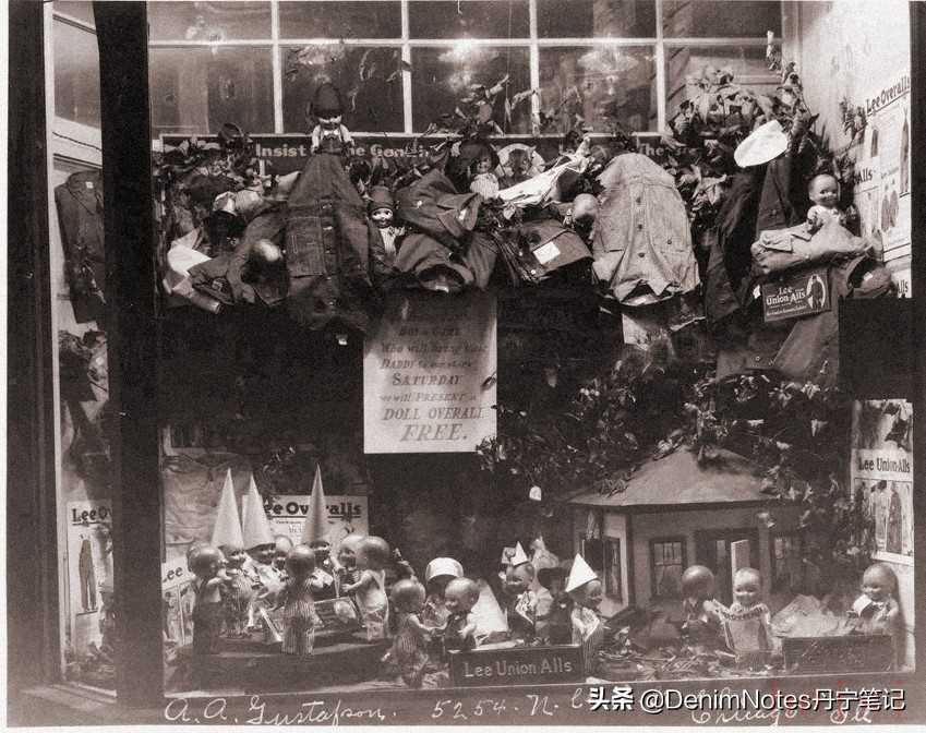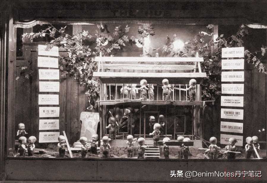 1922 年,身穿着Lee 复古工装的 Buddy Lee ,在美国明尼亚波利斯Dayton百货商店的橱窗中展示,一炮而红。