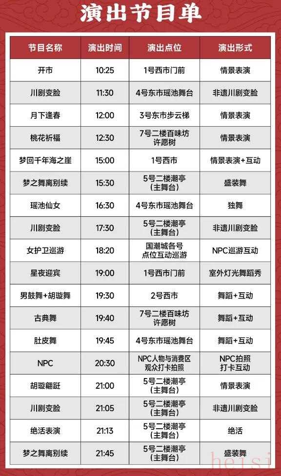 TIPS:一楼西市步梯灯笼区、穿过西市大街的中一门霓虹灯区、走到中二门来到一楼东市枫叶区、一楼东市步云梯、二楼百味坊桃花树下、二楼潮亭舞台区域、三楼潮亭皆是出片打卡点位。