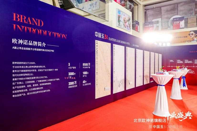 9月26日,欧神诺瓷砖北京旗舰店盛大开业,中国玉3.0系列新品同步亮相,600㎡的展厅内汇聚中国玉系列等千余款精品瓷砖,以东方静奢主义风格与全案交付系统,为京城消费者带来全新家装体验。活动期间,帝欧水华集团总裁、欧神诺陶瓷董事长兼总裁吴志雄和华耐家居集团董事长贾锋接受媒体采访,深入解读品牌战略、产品创新与渠道服务的核心思路。