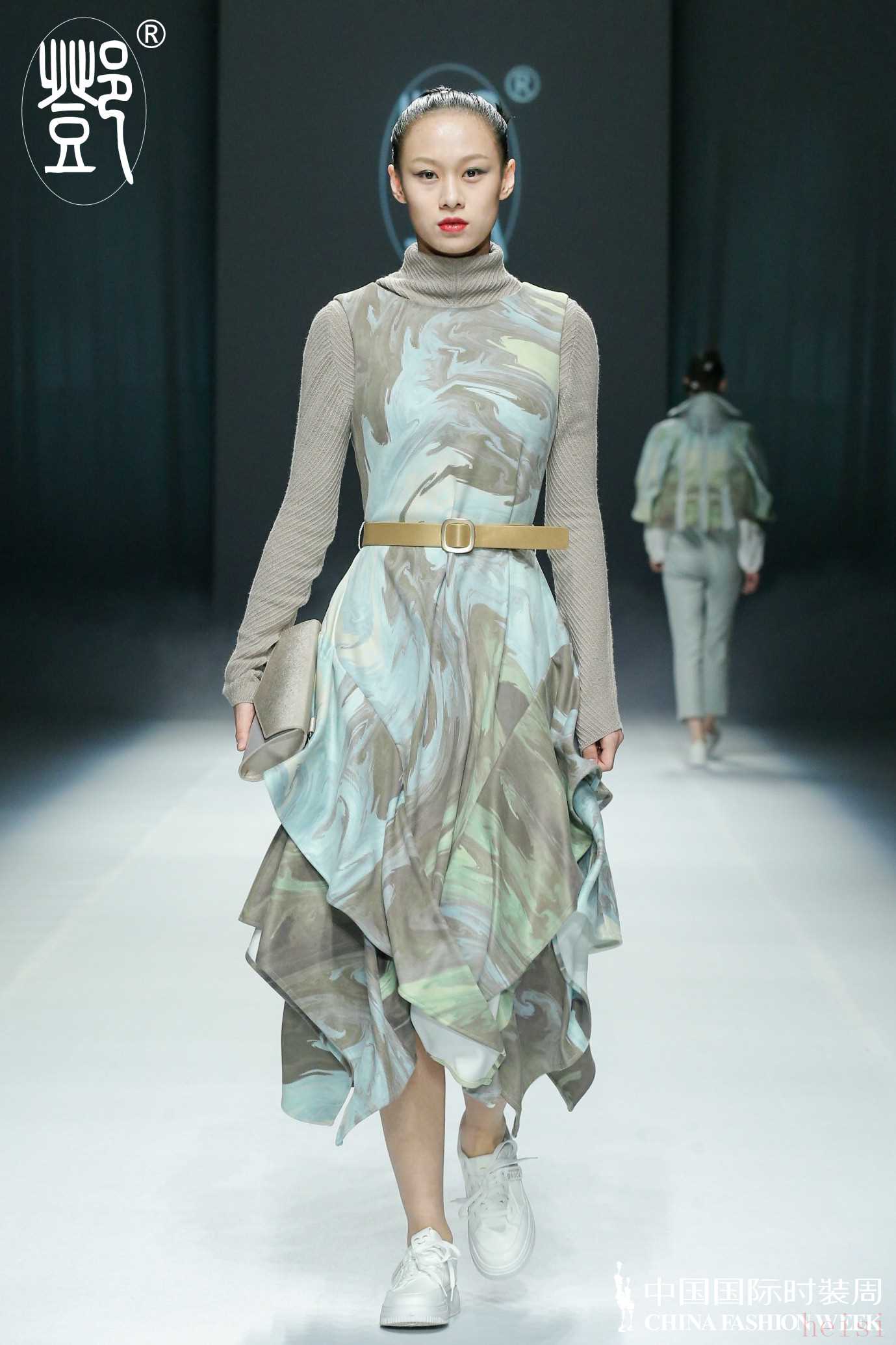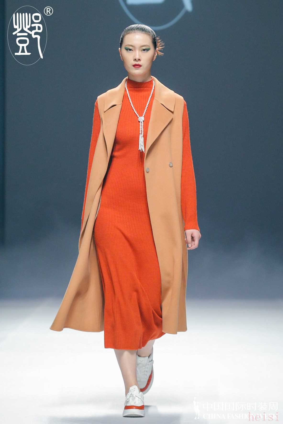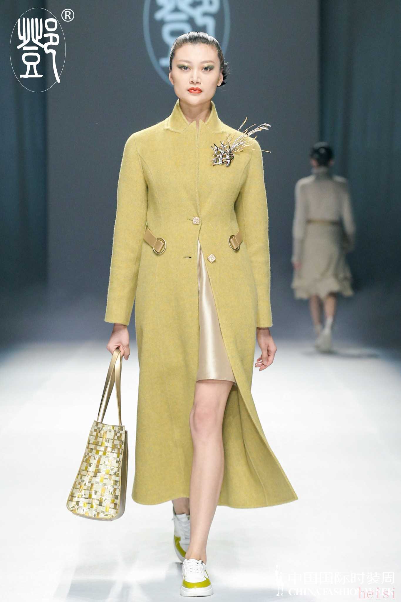 “坤灵”——大地灵秀之气。秋收冬藏,大地厚德载物,自然界万般颜色是设计师创作的原动力,象征丰收的橘红和姜黄、厚实温暖的烟褐和橄榄绿、如炊烟般的米白灰,一幅丰收祥和又充满生活气息的美丽画卷款款展开,设计师巧妙地把时尚艺术融入科技创新面料中,结构简约利落,流畅大气,作品细腻优雅又充满人文风情。一如邓兆萍的风格:源于自然,超然物外……