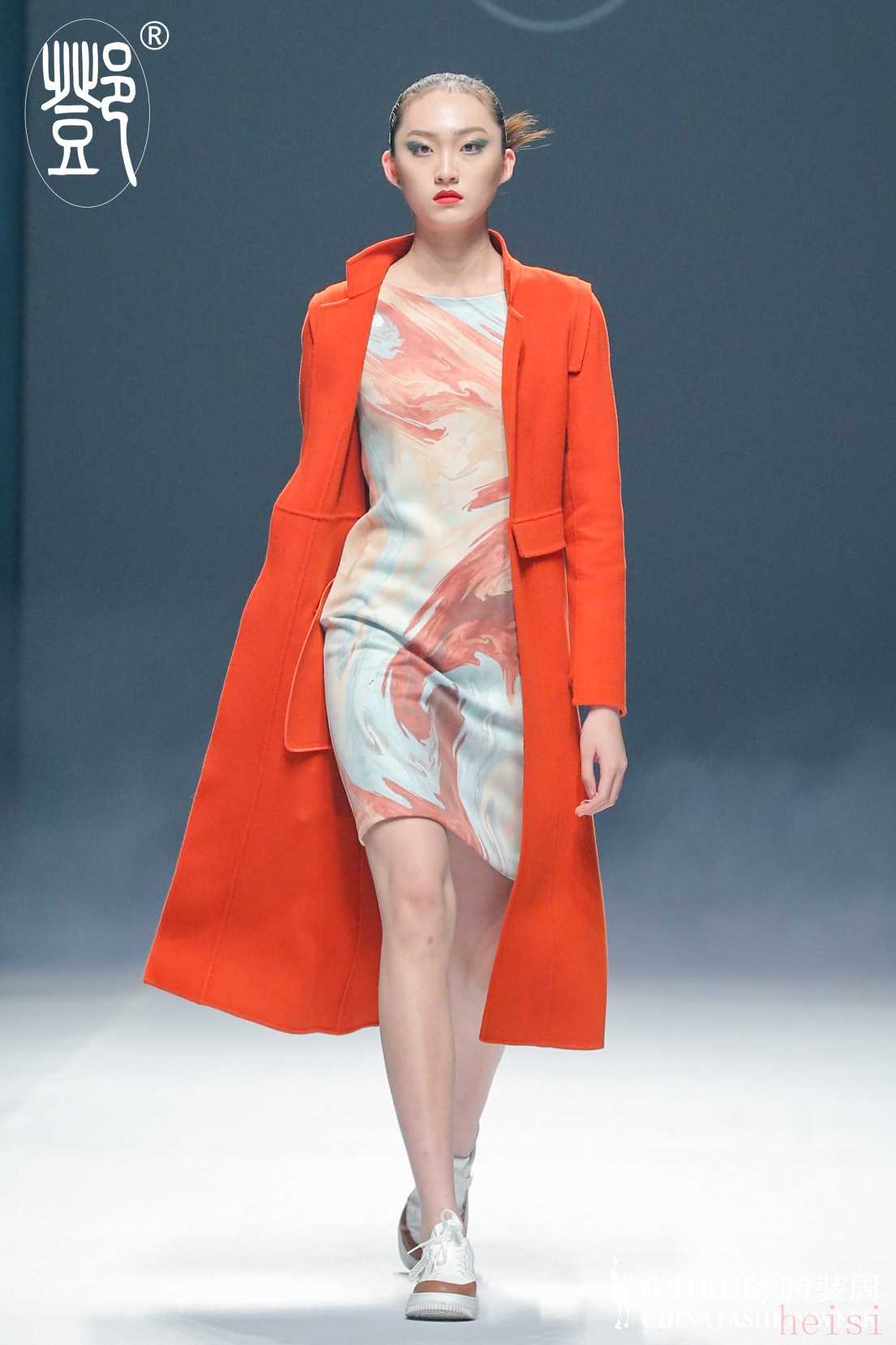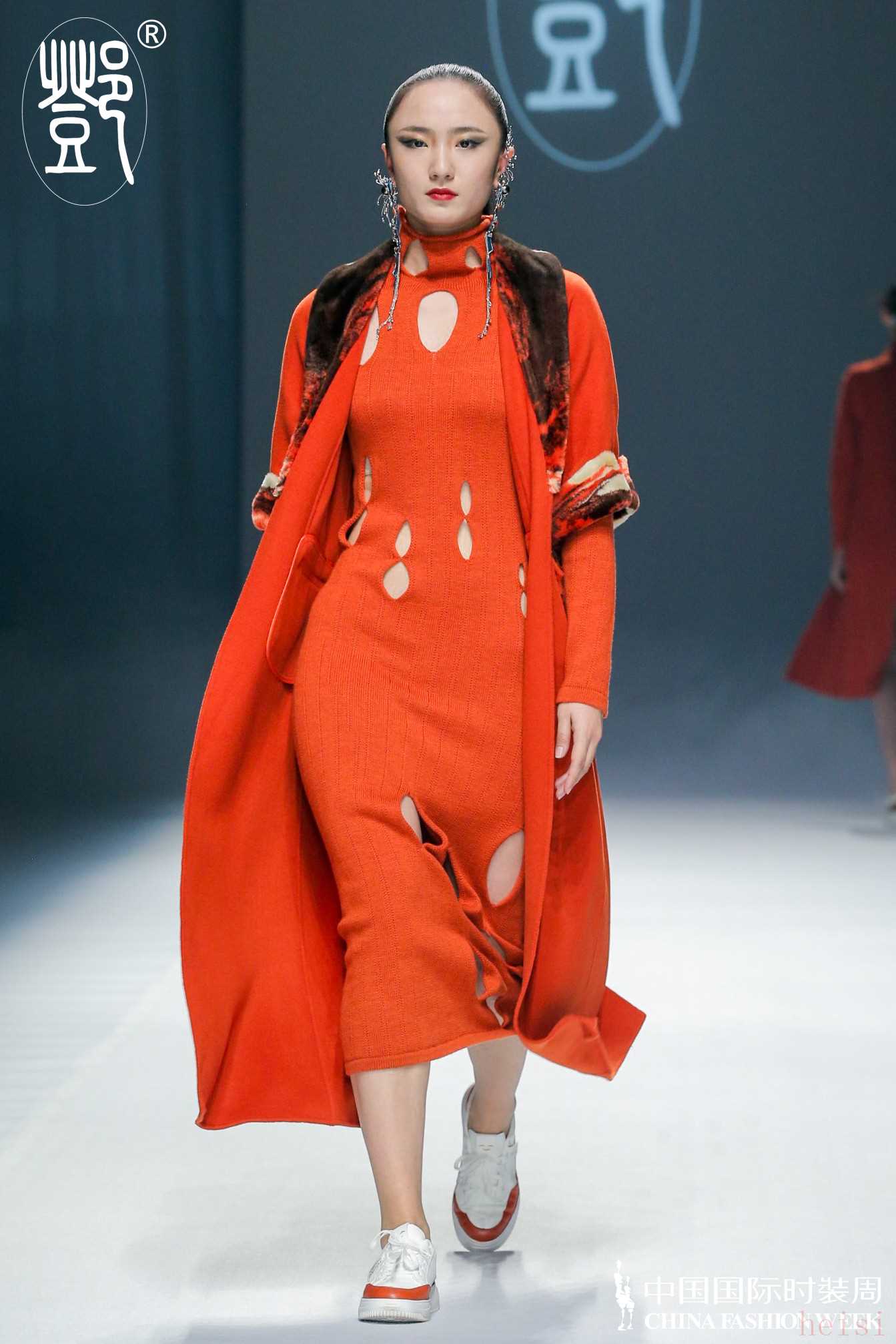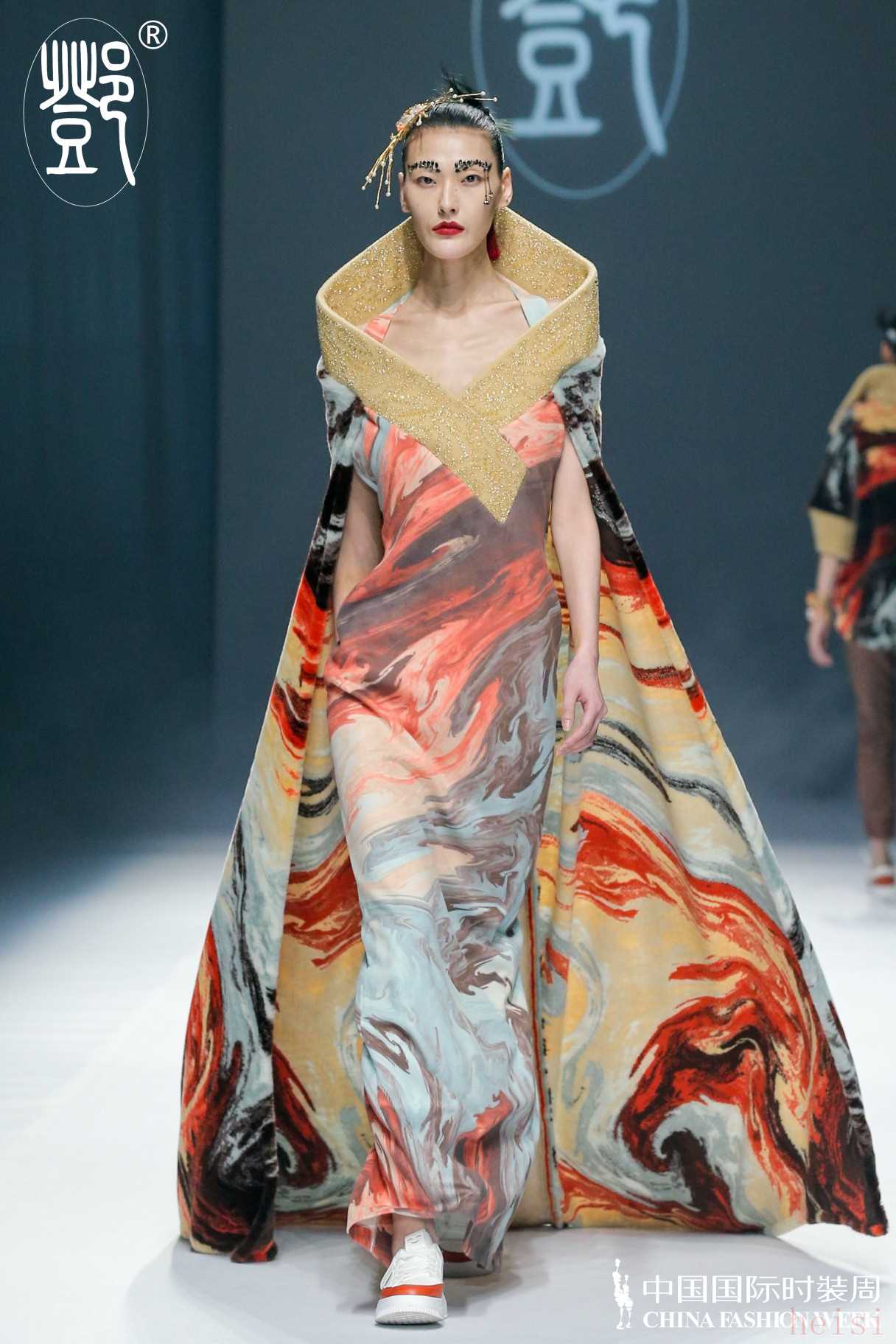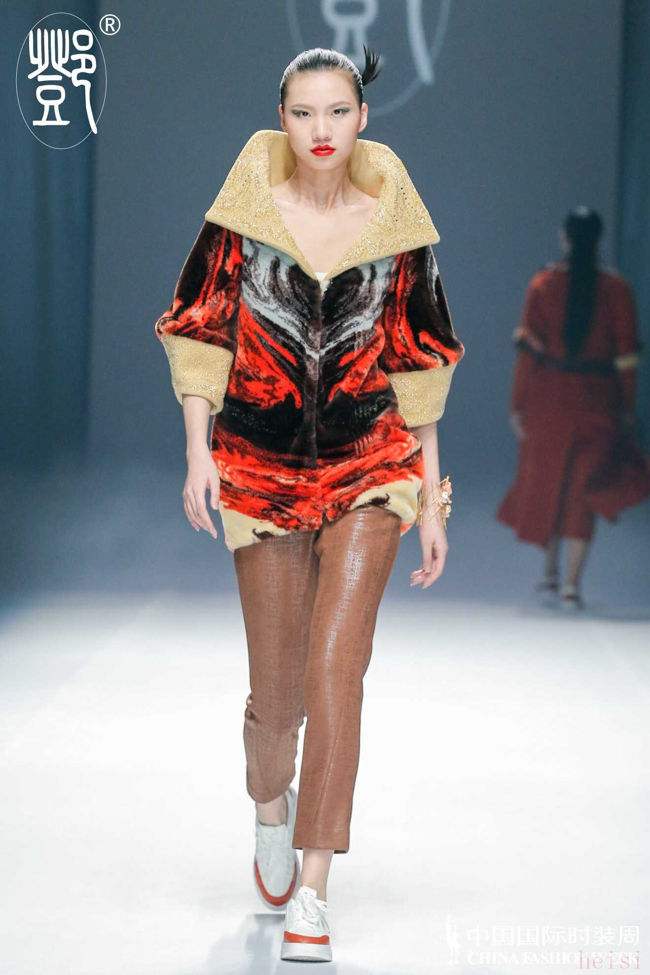 “坤灵”——大地灵秀之气。秋收冬藏,大地厚德载物,自然界万般颜色是设计师创作的原动力,象征丰收的橘红和姜黄、厚实温暖的烟褐和橄榄绿、如炊烟般的米白灰,一幅丰收祥和又充满生活气息的美丽画卷款款展开,设计师巧妙地把时尚艺术融入科技创新面料中,结构简约利落,流畅大气,作品细腻优雅又充满人文风情。一如邓兆萍的风格:源于自然,超然物外……