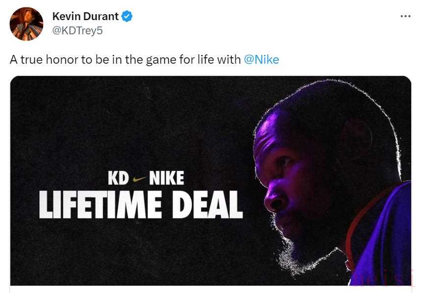 对此,杜兰特更推道:“能够与耐克一生相伴是我莫大的荣幸。”