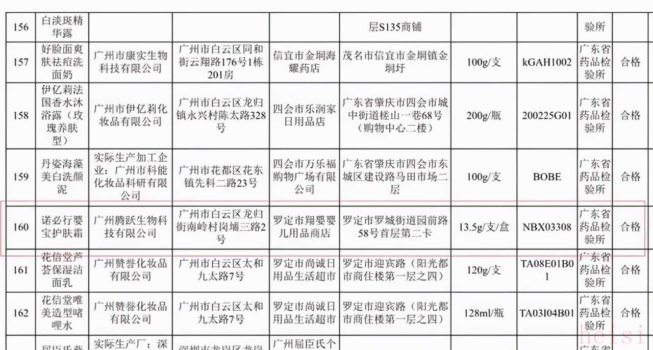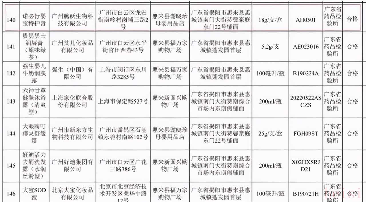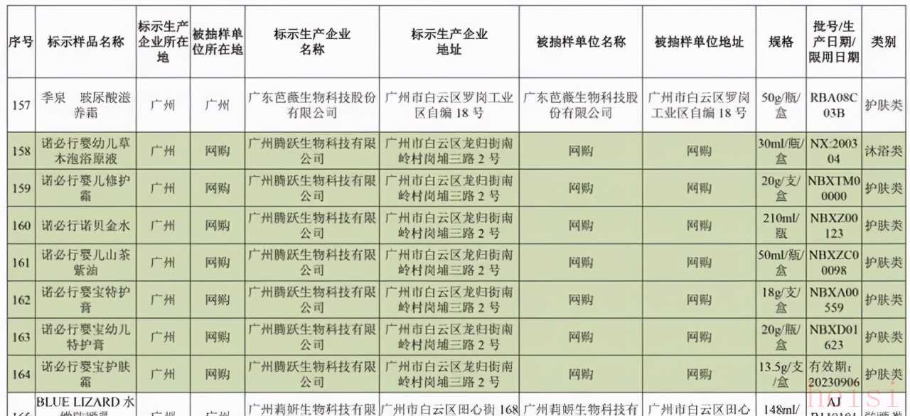 (诺必行产品:婴宝护肤霜与婴宝特护膏)2021年3月,广东省药品监督管理局发布2021年第18号通告,公布了全省592批次化妆品的抽样检验信息。其中就包括两款众多消费者们经常用到的宝宝湿疹膏——诺必行婴宝,分别是婴宝护肤霜和婴宝特护膏。通告显示,这两款产品的检测结果均为合格,不含违禁成分。