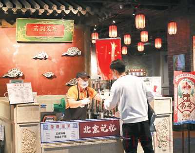 “感觉穿越回了上世纪八九十年代的北京街头。”从南京来京旅游的孙阿姨赶到王府井百货大楼负二层的和平菓局,胡同里的老物件、做旧的录像厅、手艺人的老糖画……复刻版的老北京城映入眼帘。
