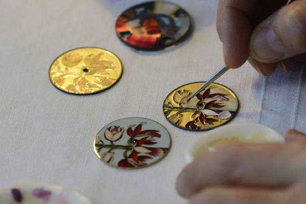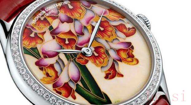 江诗丹顿的珐琅腕表除了使用掐丝珐琅、内填珐琅外,还运用了微绘珐琅。