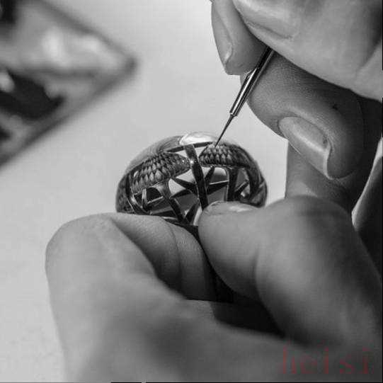1. "Bvlgari (宝格丽)":宝格丽是运用珐琅工艺的大师。他们的珐琅常常色彩鲜艳、图案复杂,从传统的法式珐琅到创新的“珐琅丝”(Enamel Cane)技术(将珐琅细丝编织入金或银中),都展现了高超的技艺。宝格丽的Serpenti(蛇形)系列和许多经典戒指、项链都点缀着精美的珐琅。