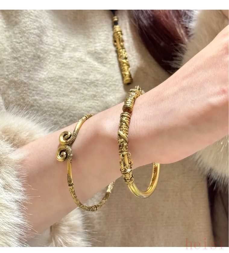 2. "复古/老款式:" 受到90后、00后追捧,带有岁月痕迹的粗圆条、扁镯、平安镯等,设计更质朴或加入少量复古元素。