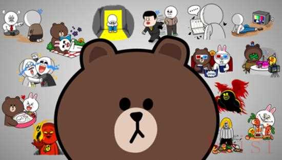 布朗熊和可妮兔们——这两个 LINE 的经典虚拟代言人成为了移动互联网时代的唐老鸭和米老鼠,除了成为聊天中的贴图,Line 给他们拍了动画片,为 Line 热门游戏当主角,并制作大量线下周边:玩偶、贴纸、实体店,全方位触及粉丝。据官方统计,用户发的每六句话中,就有一句是贴图。