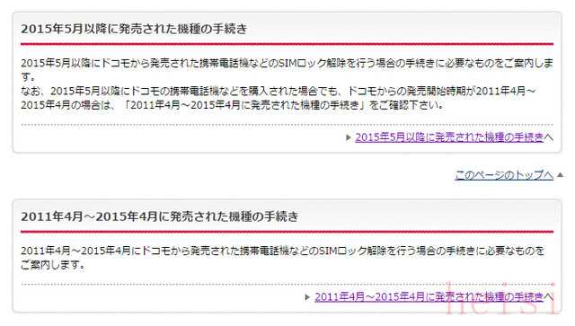 DoCoMo的解锁手续,依照手机发售时间分为两类(图片截取自DoCoMo)