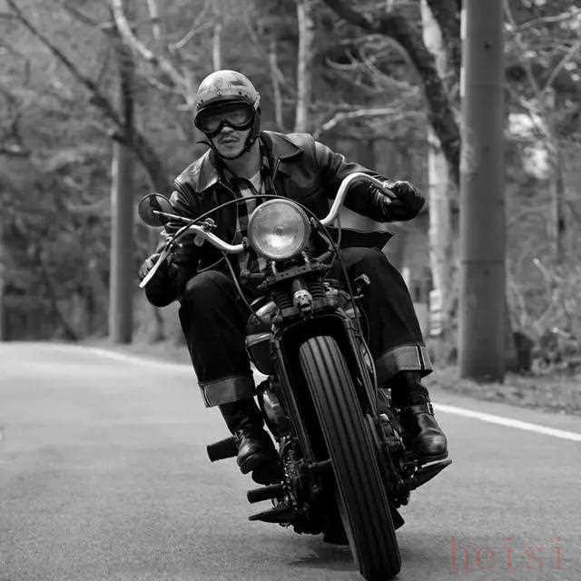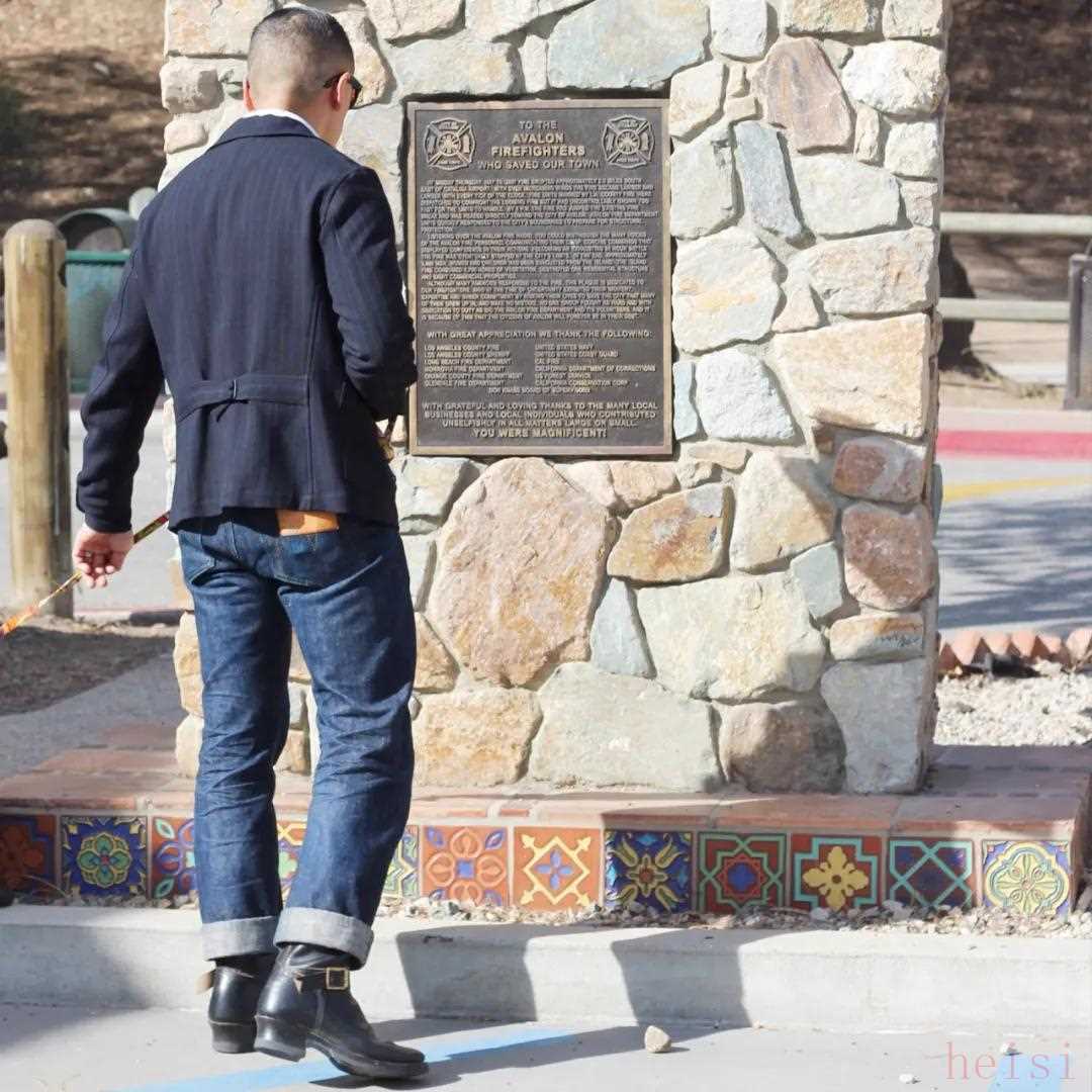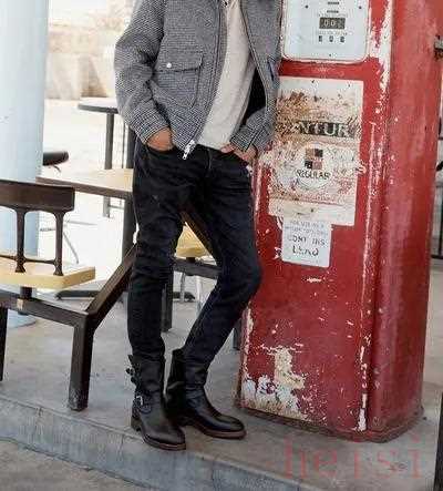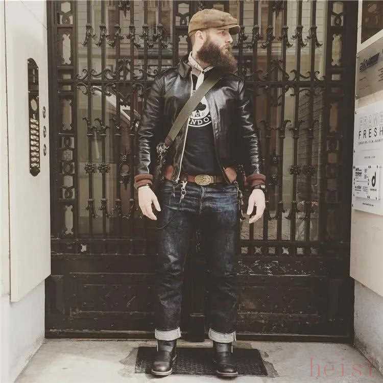 除了搭配牛仔裤,很多复古男士还会穿着直筒裤、阔腿裤、工装裤搭配工程师靴,总体遵循盖住靴筒,露出鞋面的穿法。