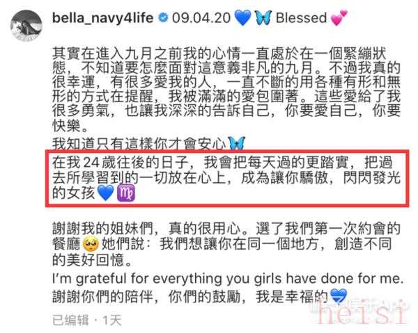 9月,Bella的24岁生日,