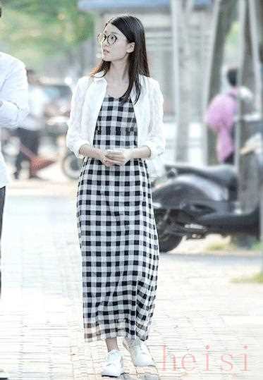 曲筱绡是小个子女生的穿衣范本,其实她的套路也很明显。她最常见的打扮是T恤+俏皮的高腰A字裙,一个超级经典的实用组合。