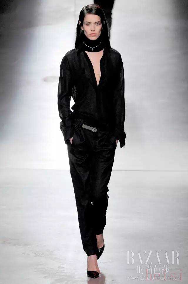 黑色是他的最爱,那些利落的外套、笔直的烟管裤装、还有斜式剪裁的“迈步裙”,都具有锋利的性感态度,让每一个向往独立的女人无比渴望。什么浪漫、什么柔美、什么卡哇伊,在他的设计里,这些统统看不到。他能给你的,是无比强大的自信,如盔甲一般武装着女人,在面对每一个挑战的时候都能勇敢地冲锋陷阵!