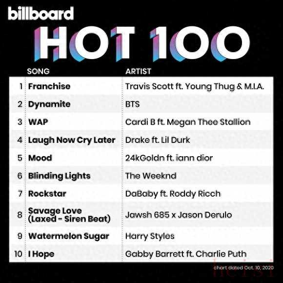 本周Billboard单曲榜出炉,当红嘻哈时尚偶像Travis Scott 和 Young Thug 还有斯里兰卡裔英国女说唱歌手M.I.A. 的合作新单曲《FRANCHISE》夺冠,空降第一位。