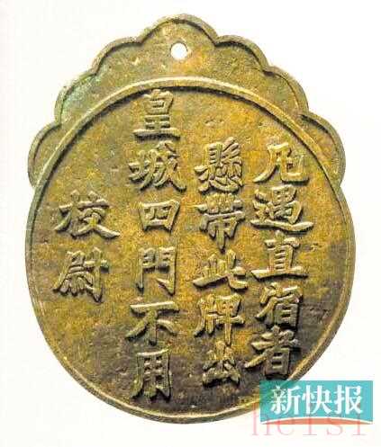 此牌专供明初南京皇城守卫者佩带。由此说明明初政权的建立。