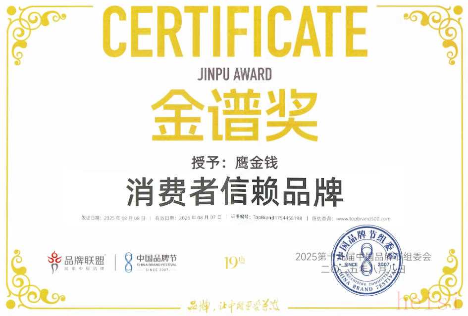 这两个荣誉的获得,是鹰金钱品牌不断发展壮大、赢得市场尊重和消费者信赖的有力证明,对于提升品牌形象、增强市场竞争力具有重要意义。
