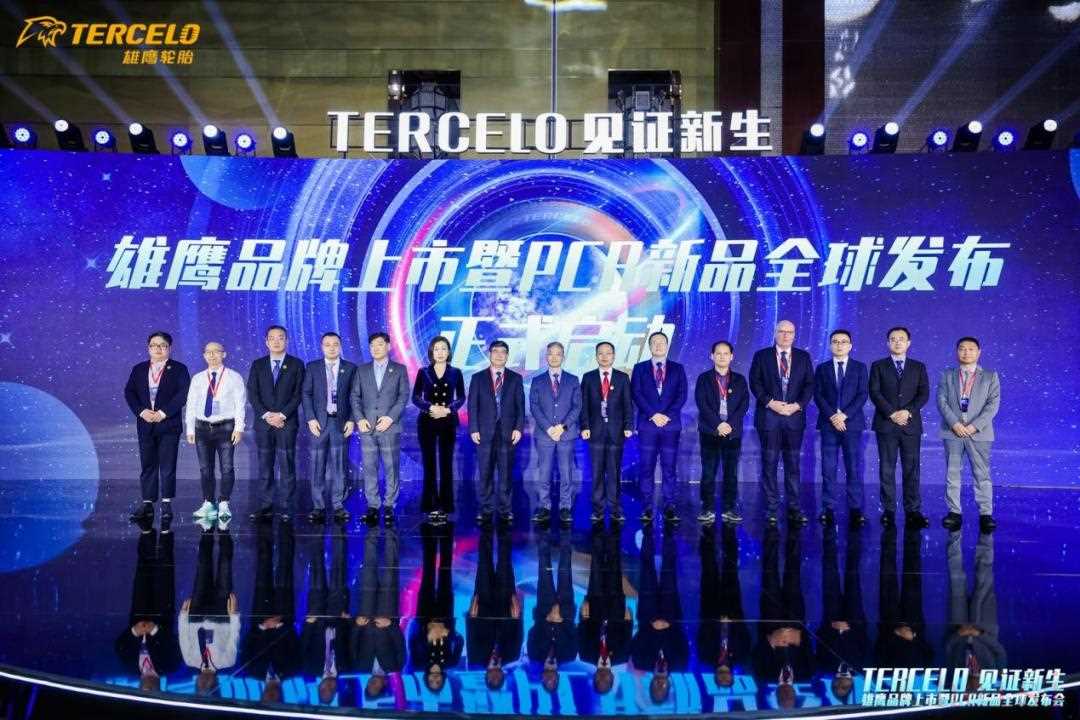 中国橡胶工业协会副会长兼秘书长雷昌纯、山东省橡胶行业协会会长张洪民、物产中大化工集团总经理陈海滨、雄鹰集团董事长熊飞、雄鹰集团总经理单奇颜,出席发布会,共同见证雄鹰品牌上市及PCR新品发布。
