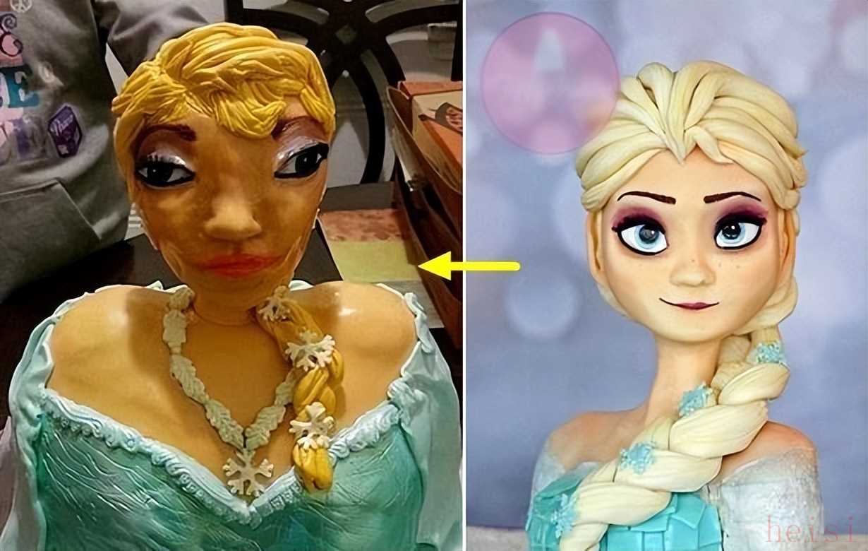 譬如蛋糕,也是翻车率最高的产品之一。有网友看了《冰雪奇缘》之后,过生日想要定制一个艾尔莎形象的蛋糕。