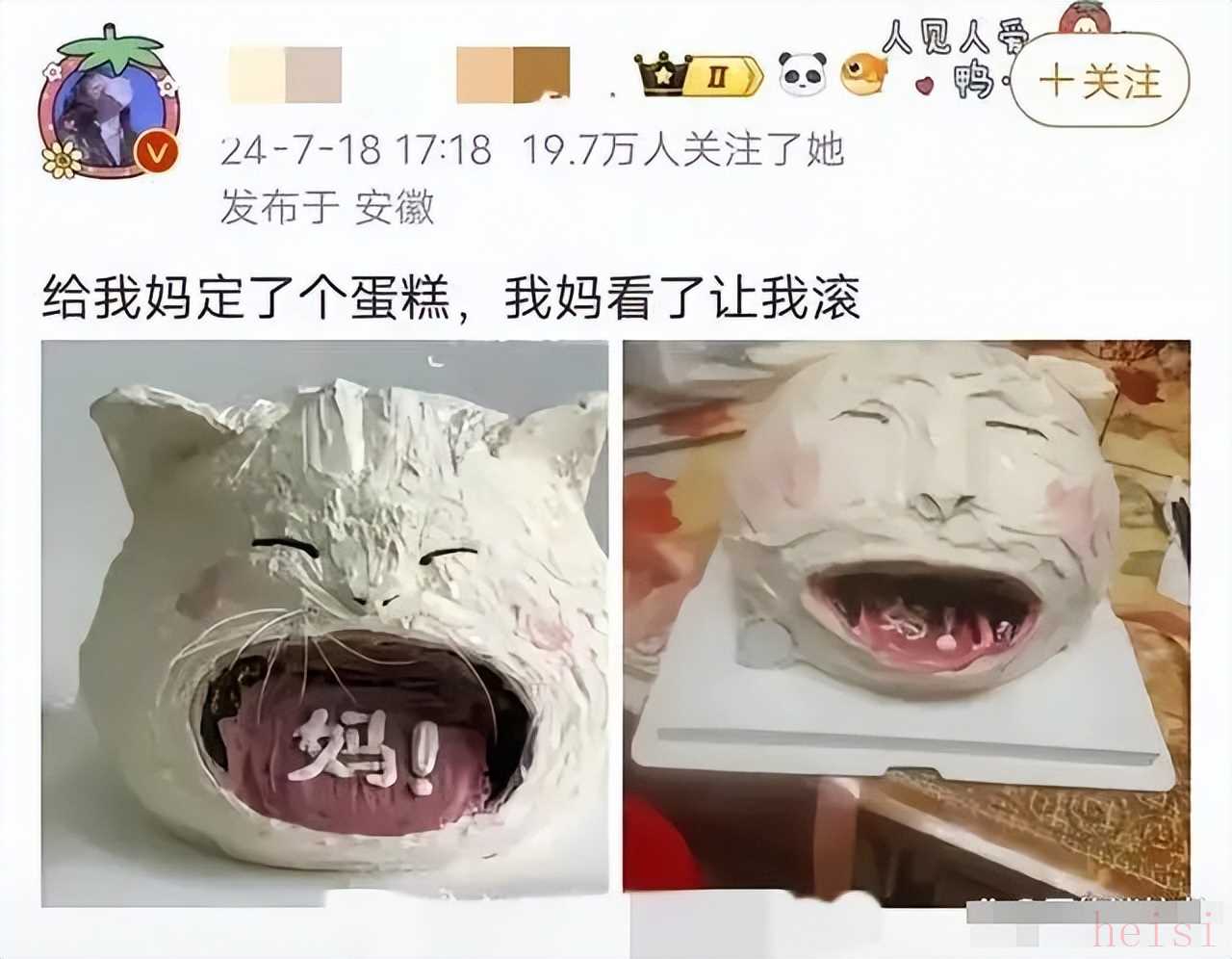 结果,出来的买家秀简直跟效果图没有半点相似的地方,可爱猫猫头直接变成了一个怪物,就这蛋糕拿给妈妈,估计会被嫌弃死。