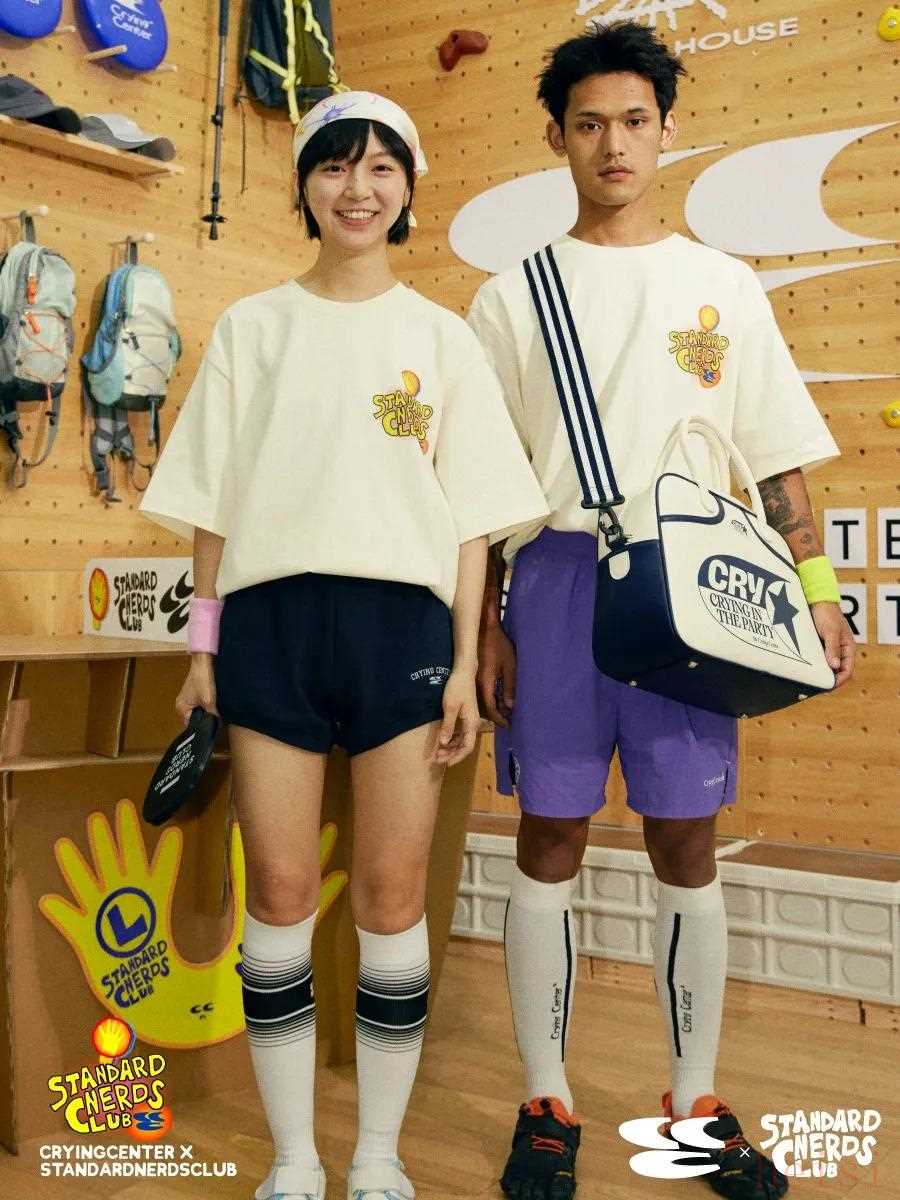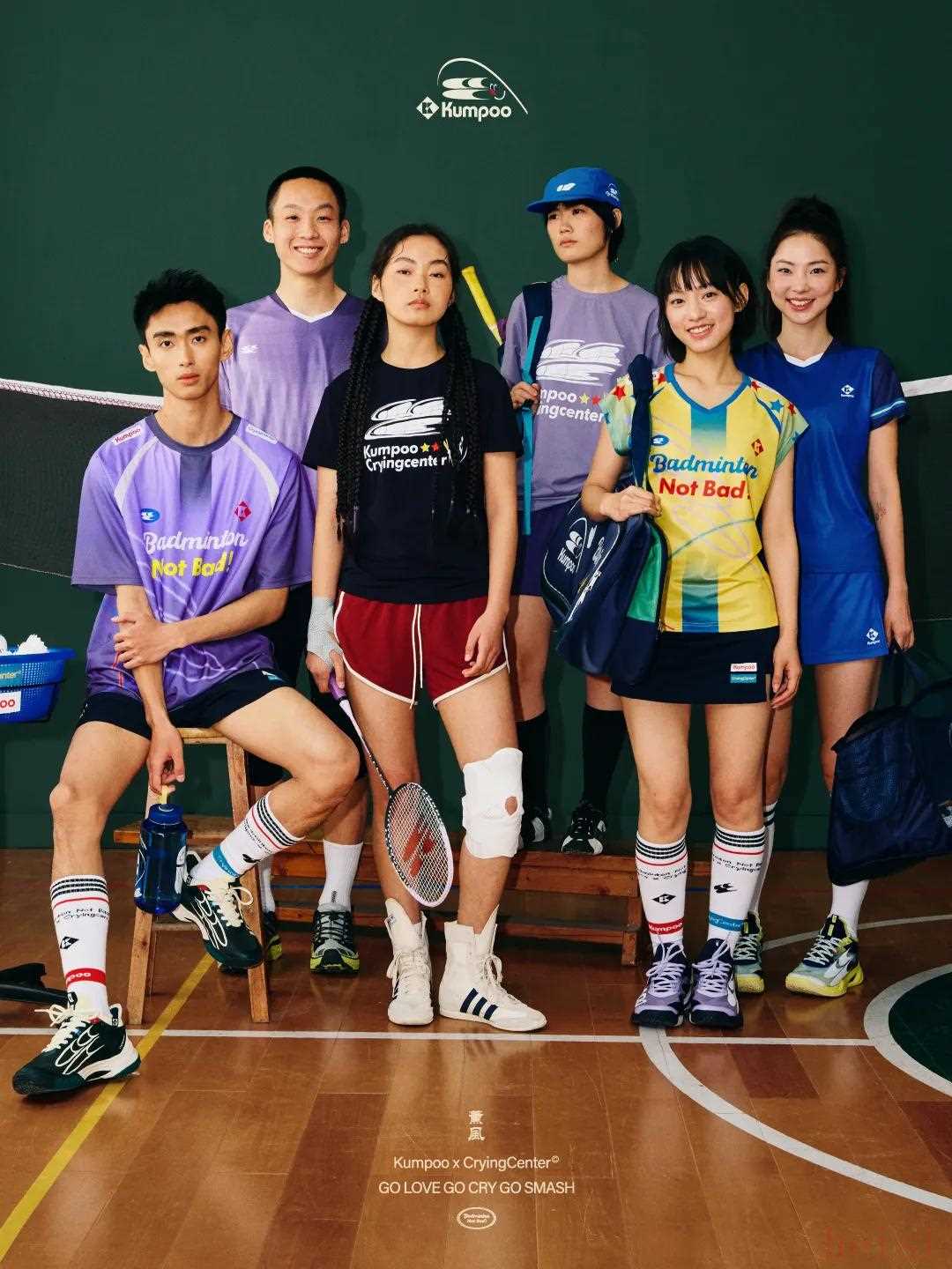 “哭喊中心”去哭去爱的品牌定位和相对应的产品设计成为了青年群体进行情感表达的有效符号和构建社交人设的低成本、高辨识度道具,在助力青年群体进行符号化自我表演的同时获得了情感共振。⑵ 仪式化认同的社群归属“哭喊中心”精准洞察了青年群体渴求归属感和认同感的心理需求,通过运营社群和开展活动将品牌社群转化为可感知、可参与的情绪共同体。“哭喊中心”把握运动赛事既有的社群连接力,选取乒乓球、羽毛球、龙舟赛等青年群体关注度高、参与热情强的运动项目展开跨界联名合作(图6)。通过将品牌元素深度融入运动场景,并定制原创T恤,使服装成为流动的品牌文化符号与成员身份标识。活动期间,参与成员身着统一服饰,深度感知群体归属与身份认同,共同构建起充满温度与共鸣的品牌社区。同时,这种沉浸式体验有效强化了青年群体对“哭喊中心”品牌理念与文化内涵的认知,实现从活动参与到情感认同的品牌价值传递。传统社群的解体加重了青年群体的迷茫与失序,社交媒体的弱关系也无法替代真情实感,而“哭喊中心”的线下仪式化社群则给予了他们在线下社群中交换意见与目标的可触摸空间,参与成员在互相分享中得到的认同感和归属感升格为对品牌的忠诚和共鸣,从陌生个体到社群成员的认知重构,使参与者产生强烈的共在感,这也正是Z世代愿意主动参与社群活动的深层心理机制和品牌亟待运营社群的必要性。图5 “哭喊中心”x DEBUG THE WORLD联名款T恤