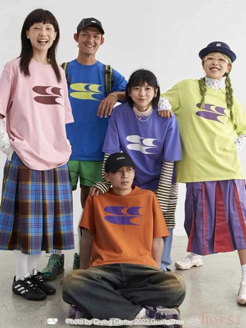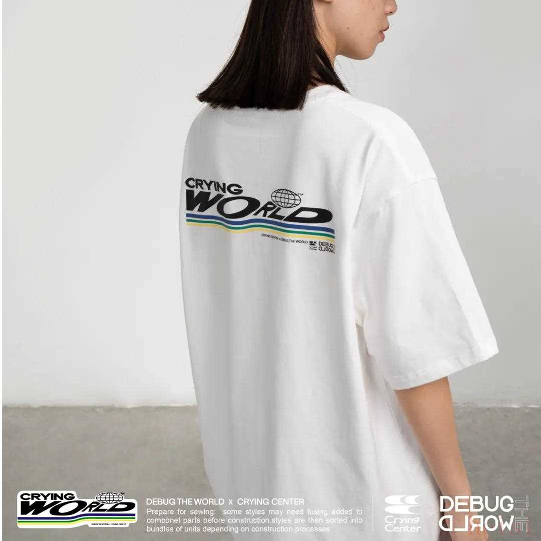 Z世代生长于信息爆炸与个性张扬的时代中。伴随社交媒体与短视频平台的迅猛发展, Z世代开始通过选择服饰符号来塑造身份形象和社会角色以满足个人表达和他人的行为期待,充分印证了戈夫曼的拟剧理论。从社交平台上的个性化人设打造,到基于兴趣的圈层文化创作,他们通过自我展演实现价值表达,同时在虚拟社群的互动和参与中表达自我、彰显自我、补偿自我、治愈自我。这种自我展示需求与社群认同感的双向驱动,不仅重塑了Z世代的社交模式,更催生出独特的品牌营销模式,成为推动网络文化生态中品牌不断革新的重要力量。⑴ 自我符号化的前台展演Z世代的社交移动化、在线化特征使得符号化表达成为常态,通过社交货币塑造,品牌可以由此获得实际销售量和情感认同。“哭喊中心”始终坚持支持青年群体情绪表达的品牌理念,例如联名“DEBUG THE WORLD”推出原创T恤(图5),用原创中性风和极简风设计彰显出“不被定义”的鲜明品牌个性,加大版的联名印花成为了个性表达的鲜明标志,也成为青年群体“放声哭喊,对撞世界”的宣言符号,满足了前台展演的情感诉求。