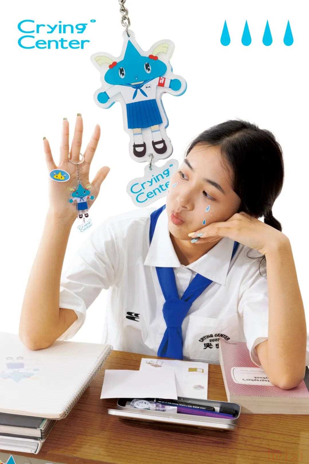 在初步形成记忆点的基础上,“哭喊中心”于2021年推出“泪仔”(tearer)IP形象。在传统教育观念中,青年群体并不能自由表达不满与负面情绪,缺乏自由宣泄的出口。“泪仔”将泪滴作为主要符号,与“哭喊中心”“去哭去爱”的品牌理念和品牌核心价值相融合,实现“哭喊中心”品牌文化价值的立体化、人格化表达,给予青年群体精神慰藉和情绪出口。2023年,“哭喊中心”对泪仔IP进行形象升级,公开推出泪仔女孩IP(图2),这一性别反差设定打破固有认知,拓宽了IP的内涵边界。泪仔女孩周边产品成为青年群体展示自我的物质载体;配套表情包更是在网络空间的社交互动中,充当青年表达情绪、开展社交的文化符号。“哭喊中心”这种多维度、多场景的开发创新让青年群体在日常生活与网络社交中,都能借助泪仔女孩相关元素得到精神慰藉,从而赢得青年群体对品牌的深度认可和情感共鸣。图1 “哭喊中心”商标