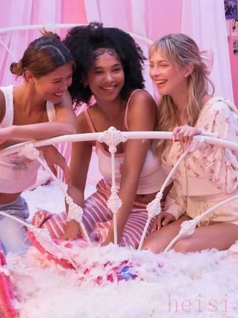 当然,还有开头提到的与泡泡玛特Peach Riot的联名系列。两个品牌灵魂契合,将「睡衣派对」的概念转化为一场慵懒又潮酷的视觉化表达,精准捕捉了Z世代想要的俏皮与自信。
