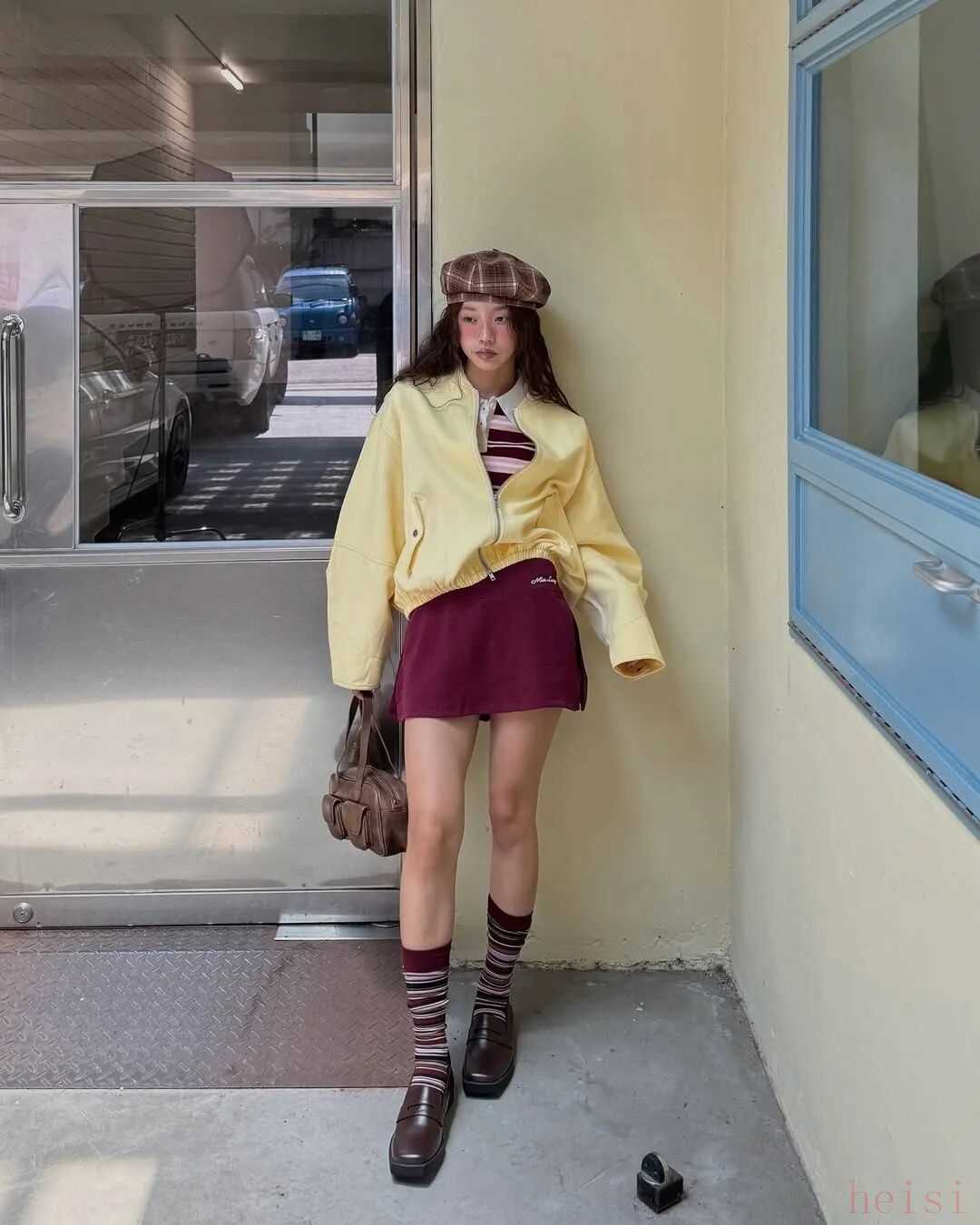 韩国博主mulbada演绎的早秋穿搭也很有巧思,通过色彩搭配和叠穿,摇身一变,成了时髦有气质的学姐,既复古又少女。
