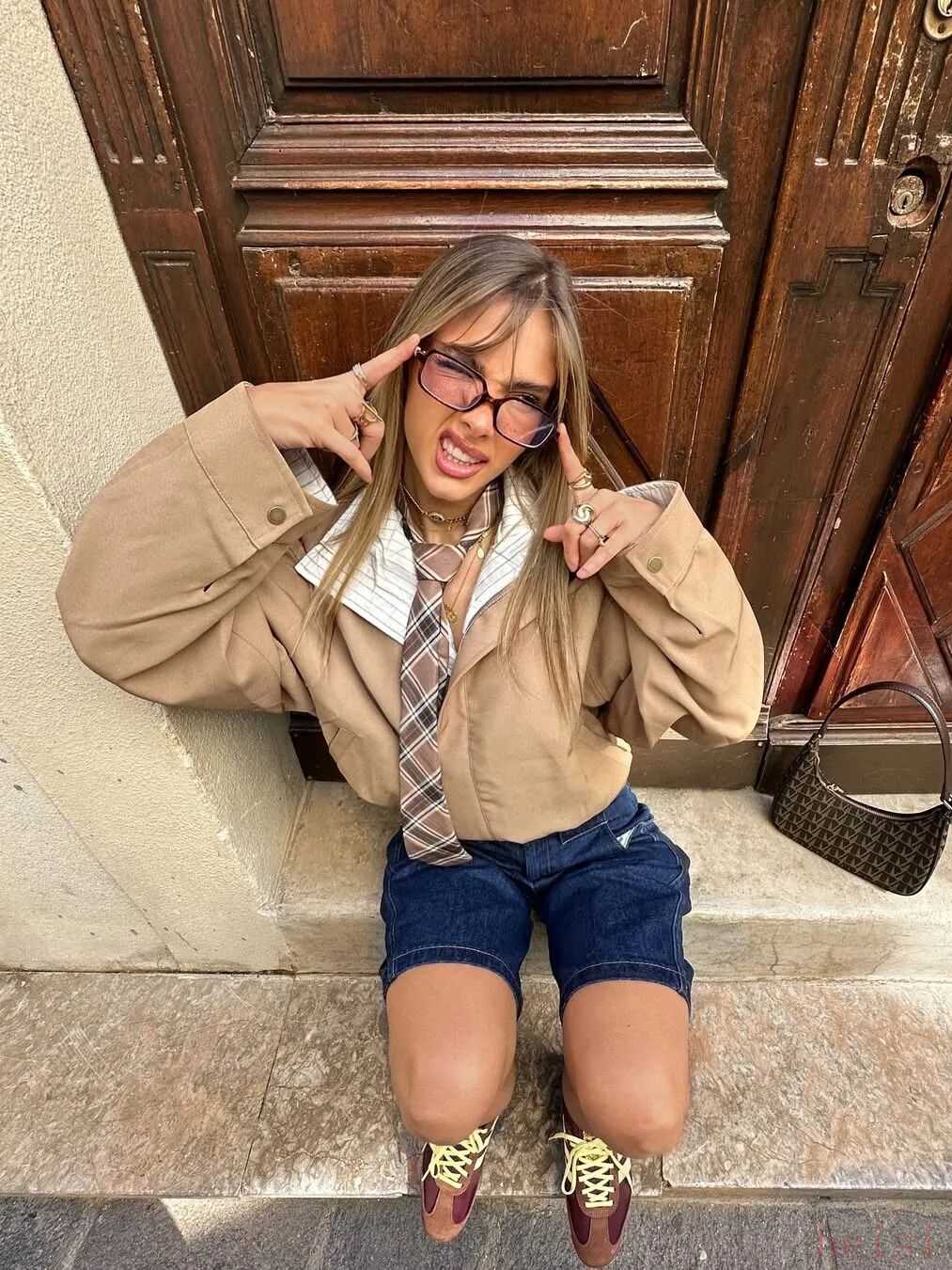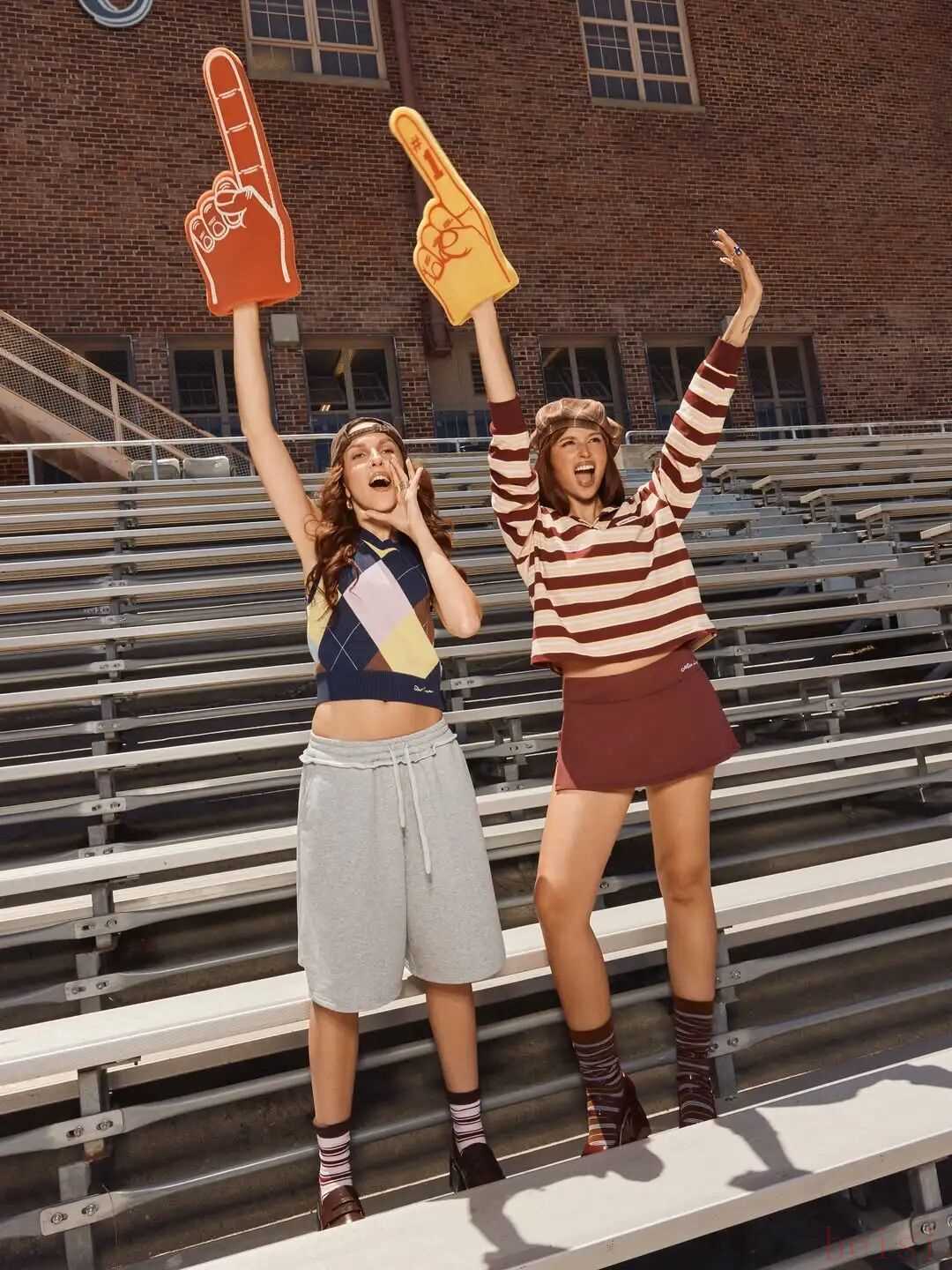 很多百万时尚博主也自发带货,比如博主SOFIA COELHO和她的闺蜜搭子Ines Silva演绎的非正式学院风,就巧妙融合了Y2K元素与复古美式学院风。打造出独具辨识度的“Y2K混搭复古美高风”。