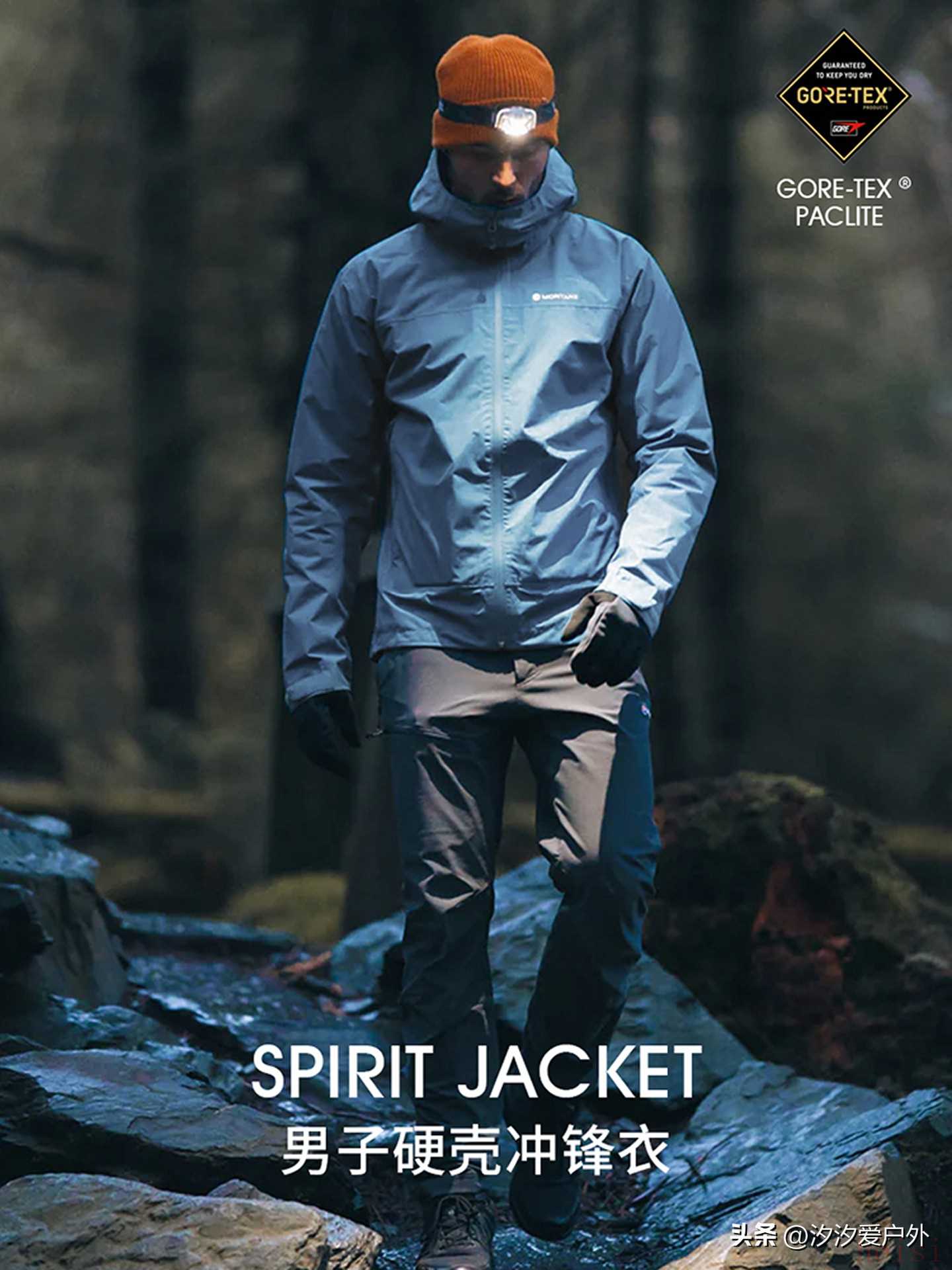 由3层Gore-Tex面料制成,采用不含PFC的ePE薄膜,具有防风防水性能。采用更为环保可持续的溶液染色制作可大幅减少耗水量,实现可持续的生广。面料和背衬采用高弹性的再生聚酯纤维面料制成,提升穿着舒适度。魔术贴袖口设计,更贴合且方便美观。前襟采用AquaGuard抗水式拉链。经久耐用防泼水DWR处理,不含PFC,防水指数:20000mm。3、SPIRIT系列冲锋衣男 | MONTANE轻量徒步硬壳透气防风越野跑盟泰恩