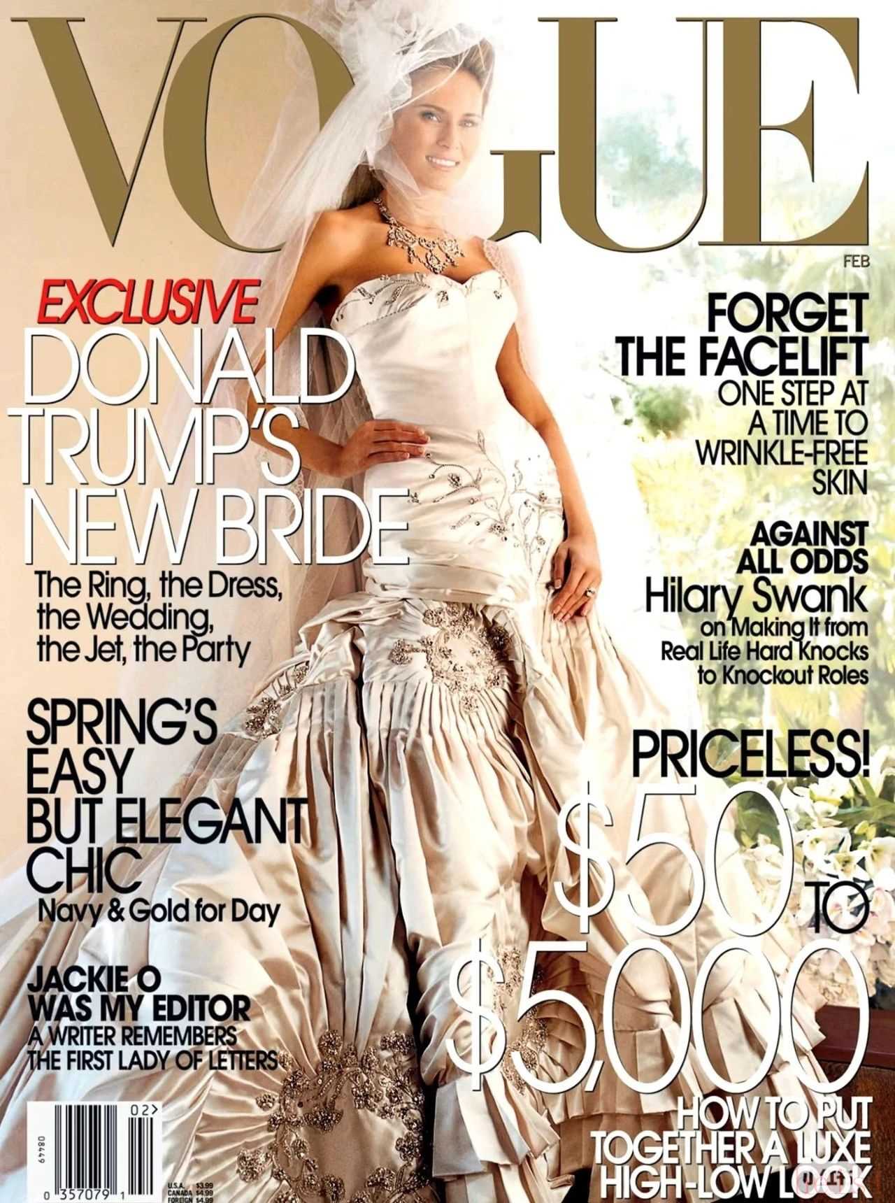 2005年,梅拉尼娅和特朗普大婚时穿的迪奥婚纱。(图/VOGUE杂志)
