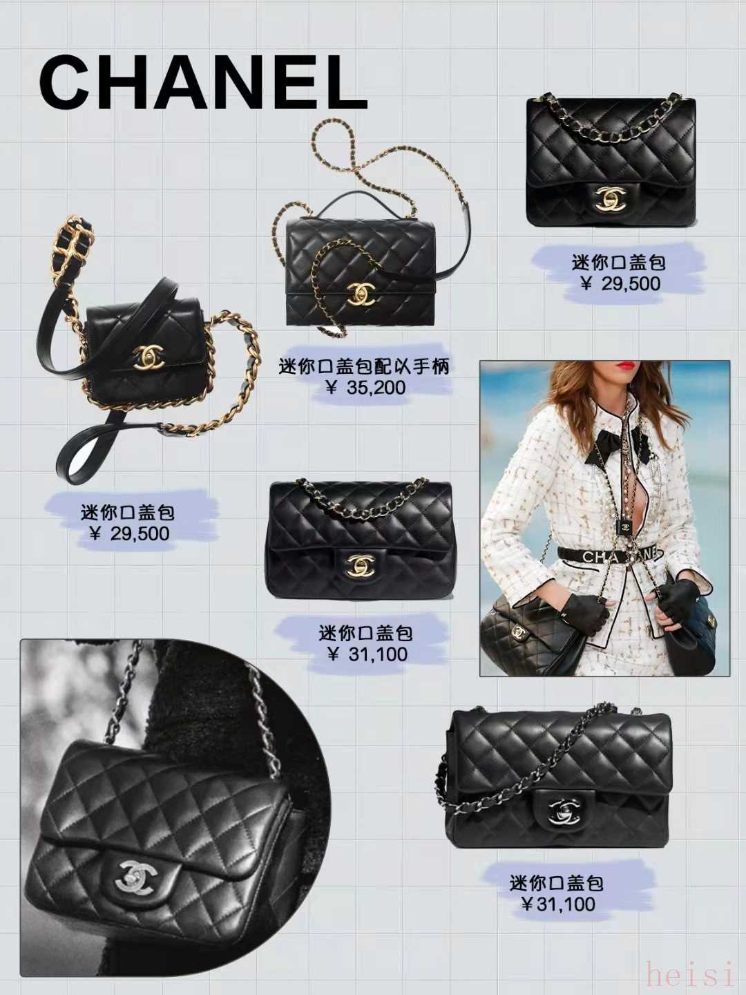 现在的小香已经不止是经典款等比例缩小了,几个月前的耳机包、口红包走红已经说明了一切,各式各样的迷你口袋包都完美的诠释了Chanel的精致优雅哦~