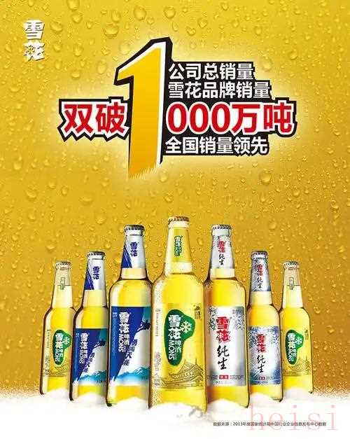 2008年,雪花啤酒以610万千升的单品销量超越百威淡啤,成为全球单品销量领先品牌。