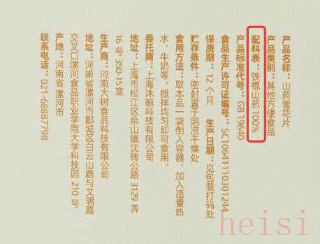 配料表简单直接,只有:100%铁棍山药。