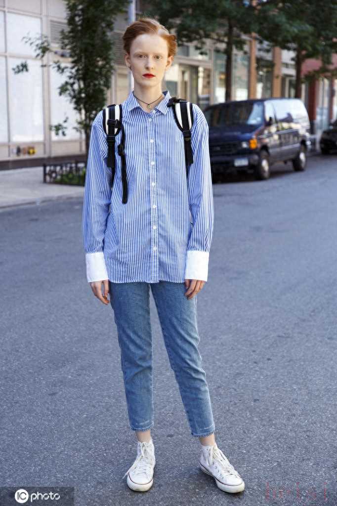 少年感很强的衬衫搭配牛仔裤,有双肩包的加持是不是减龄了不少?