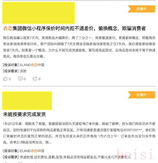而根据基金报记者查询,在消费者投诉平台黑猫平台,针对衣恋的投诉也有超过百条,内容以发货不及时和不退保价的差价为主。