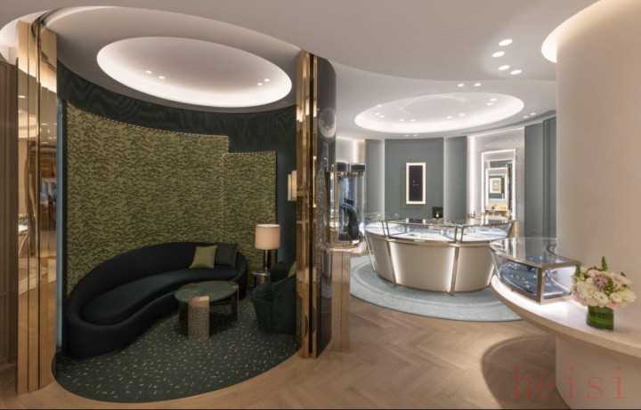 位于五层的贵宾尊享沙龙将于4月1日开幕,延续一以贯之的美学风格,以标志性的深浅绿调和高级材质,交织出充满神秘感的奢华空间,让客人能细意欣赏格拉夫的稀世珠宝,探索非同凡响的传世典藏。