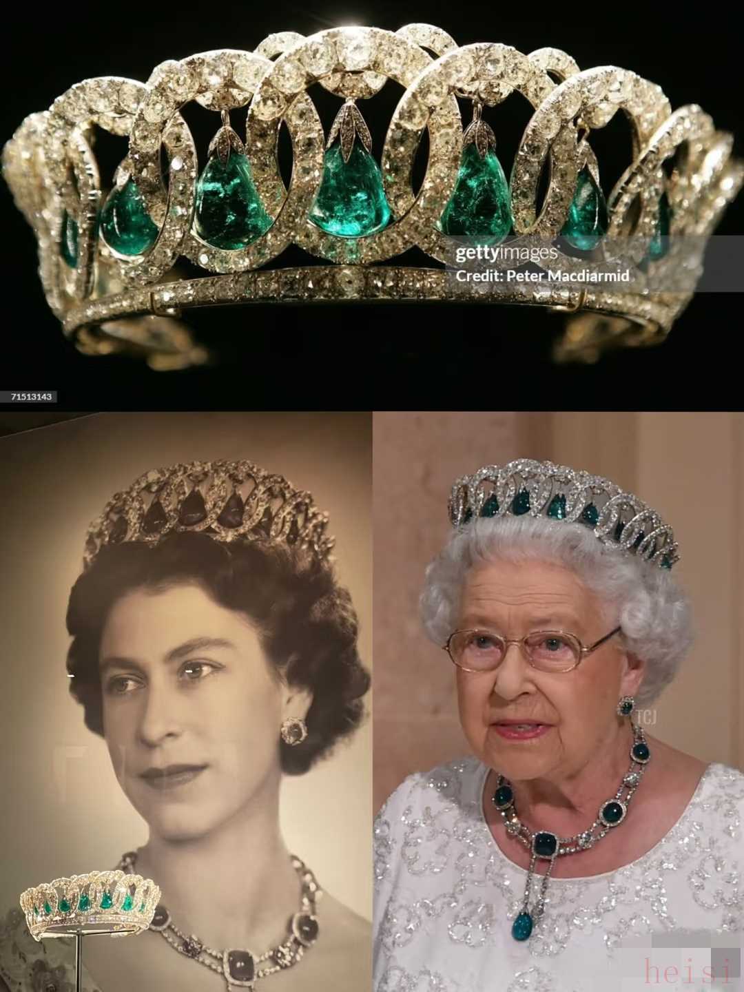 1. "英国 - 伊丽莎白二世女王 (Queen Elizabeth II) 的“女王母亲”祖母绿王冠 (Queen Mother's Green Tiara)"