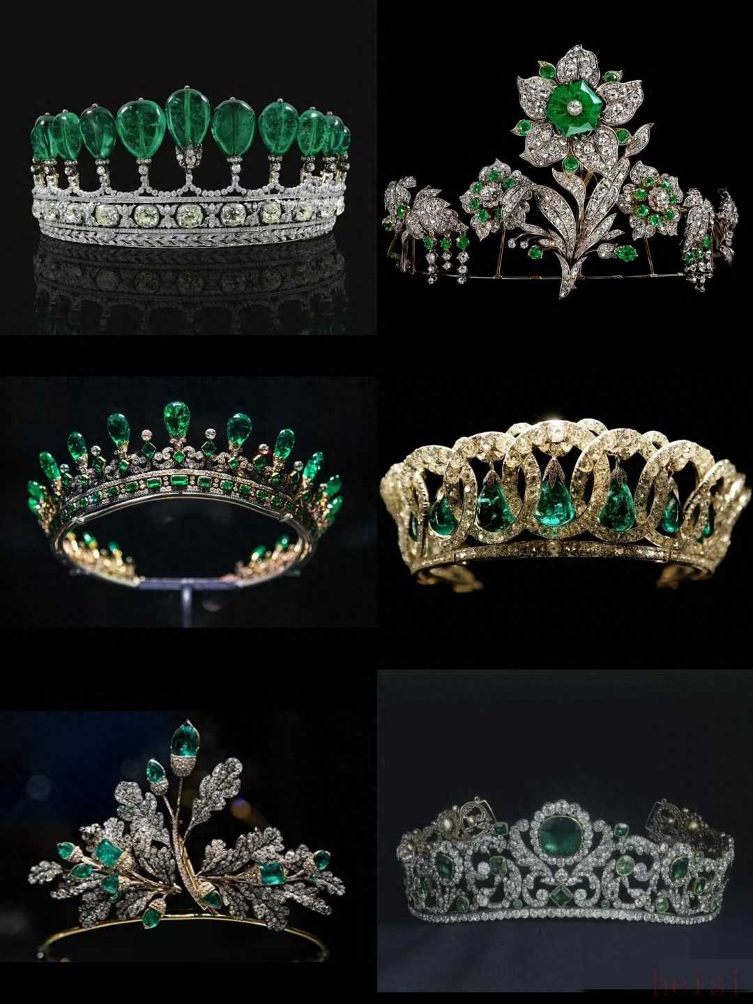 让我们来盘点一下那些在各国女王和贵族中备受青睐,尤其是以祖母绿为主要装饰的皇冠。祖母绿因其深邃的绿色和传奇色彩,一直是皇室和贵族珠宝中极具吸引力的宝石。