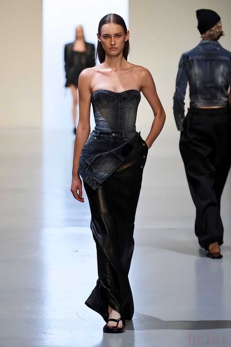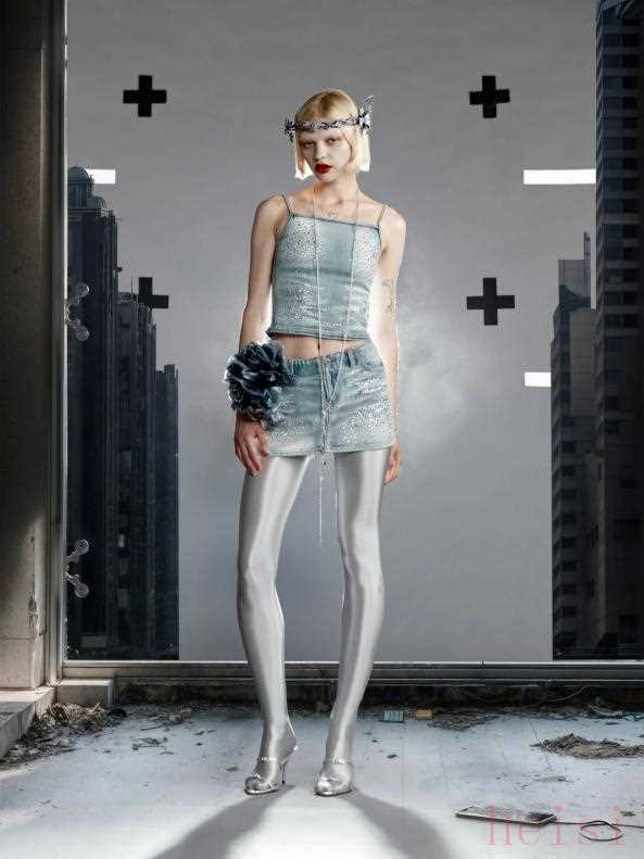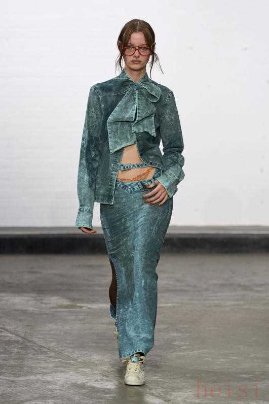 Masha Popova Spring 2025 Ready-To-WearMasha Popova 2025春夏系列如同一场视觉与心理的双重盛宴,展现了派对女孩的华丽转身。 本季的设计灵感来源于女性在20多岁至30多岁之间的成长历程,超大号眼镜、牛仔铅笔裙,以及带有90年代垃圾摇滚风格的分层设计,仿佛在诉说着她们在叛逆与责任之间的挣扎与自我寻找。