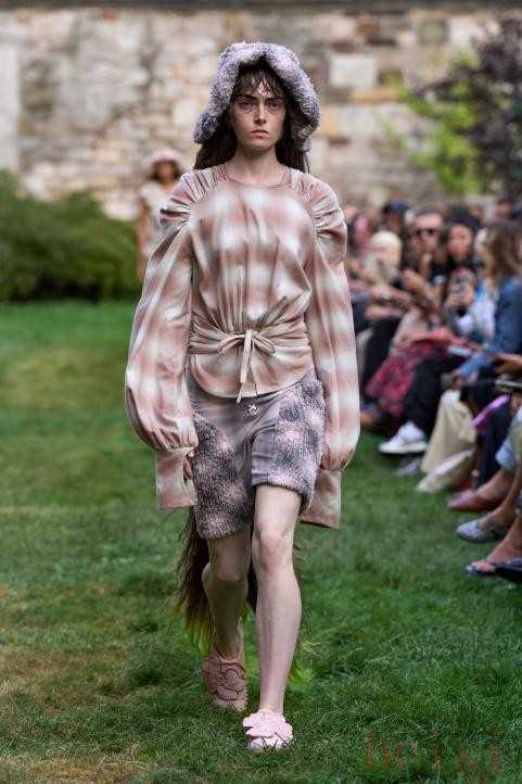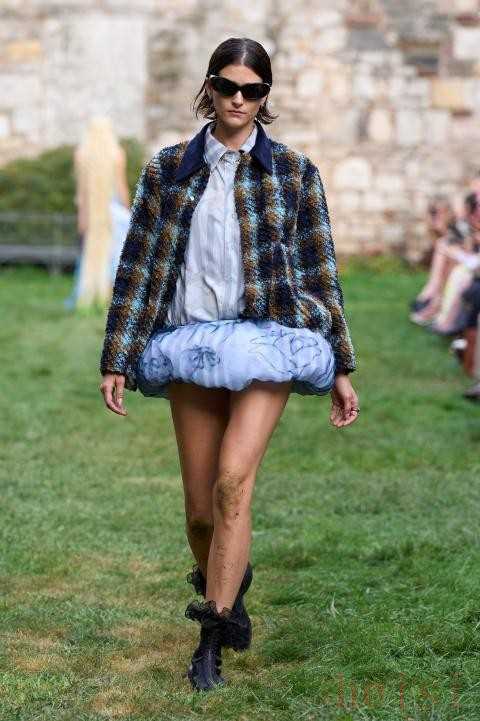 Collina Strada Spring 2025 Ready-To-WearCollina Strada 2025春夏系列以“触草”为主题,倡导人们回归自然,感受生活的本真与美好。在系列格纹元素的服装中,格纹图案多了一些柔和渐变的时尚,结合裙摆的不规则线条、拼接设计、褶皱元素等,让这些格纹的服装在细节中更多了潮范儿。