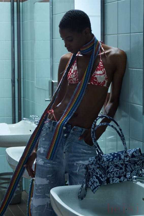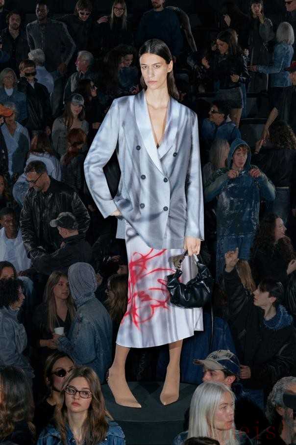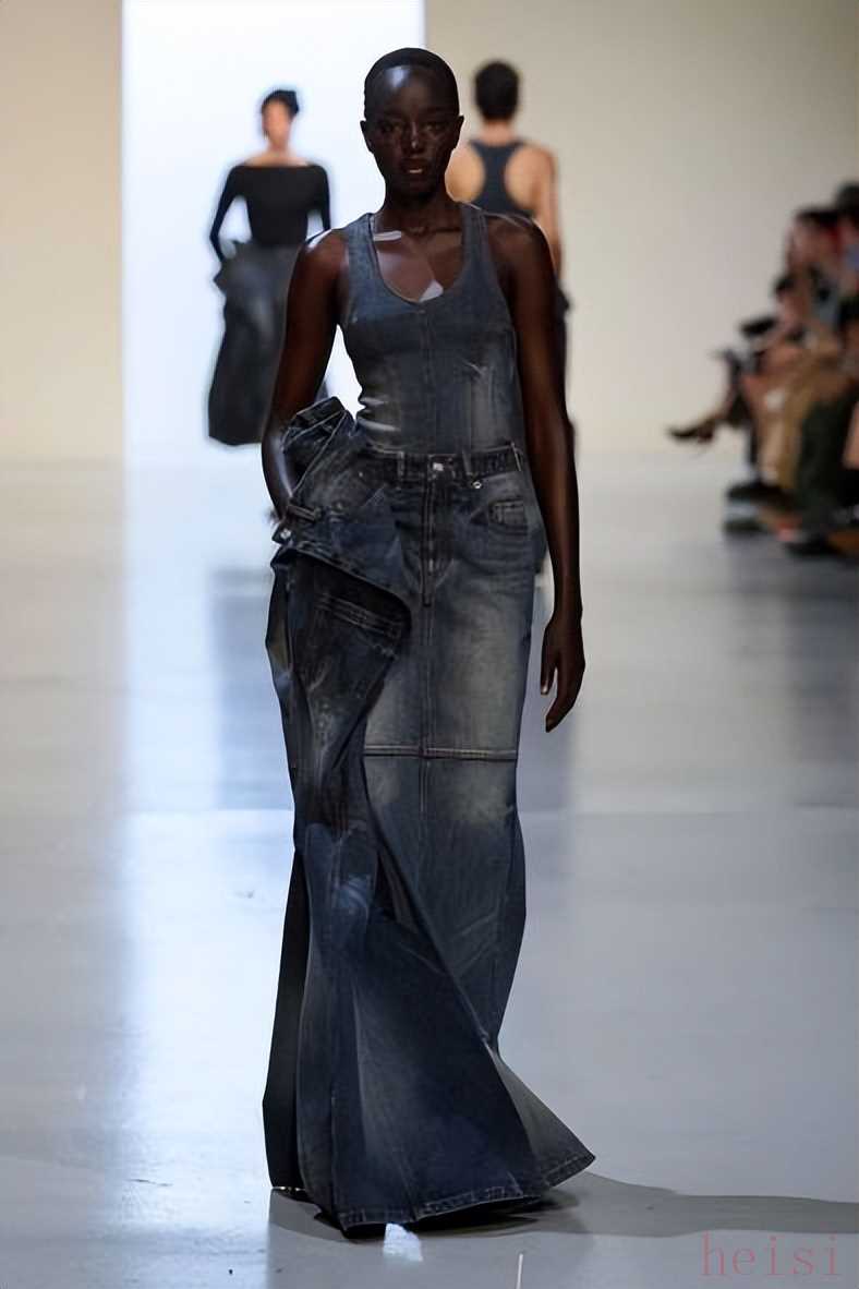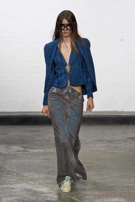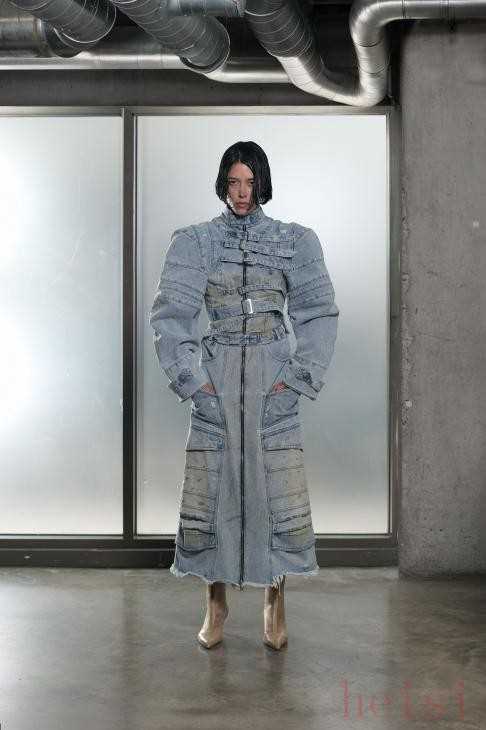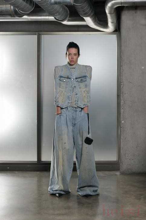 Natasha Zinko Resort 2025Natasha Zinko25早春系列名为“A Space Odyssey Redux”,融合了未来主义设计元素和经典宇航服美学,专为寻求服装革命的退休宇航员和空间站人员量身定制。该系列的突出特点之一是牛仔裤,以夸张的比例制作,并以XXL尺寸呈现。褪色、泛黄或黑色牛仔面料营造出鲜明的视觉对比,阔腿廓形与窄腰并列,证明了Zinko无可挑剔的剪裁和创新的设计方法。
