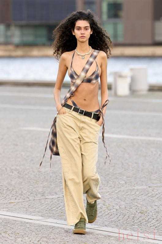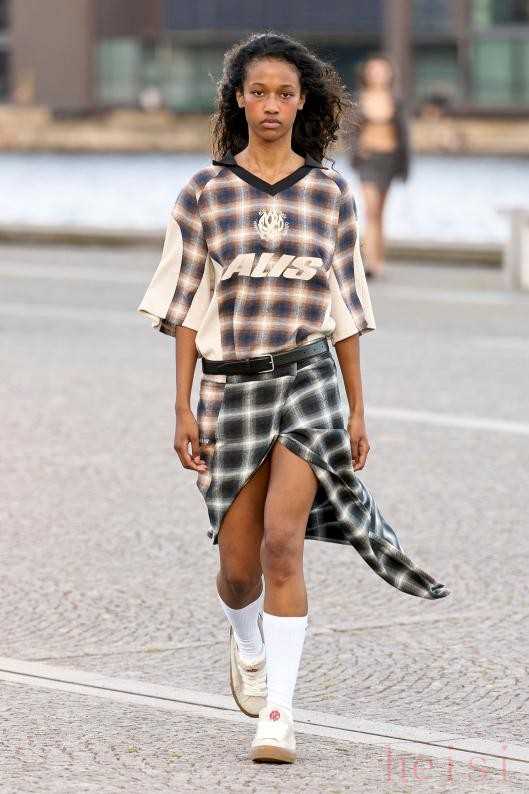 Alis Copenhagen Spring 2026Alis 2026春夏系列造型由哥本哈根 IT Girl Pernille Teisbaek负责,秀场选址于 Søren Kierkegaards Plads 广场,伴随着 OASIS 的摇滚背景声,Alis 重新聚焦于品牌与家乡的联系,拥抱哥本哈根这座城市的韵律与历史。拖地格纹裙、格纹短袖、比基尼上衣等,设计师在整个系列中融入了积极、阳光的设计表达,展现着 Alis 的重启新篇章。流动金属液态金属面料以其极致的光滑表面和科幻感十足的光泽,为街头女装注入了强大的未来主义能量。它模仿着熔融金属的流动状态,勾勒出充满力量感的身体曲线,仿佛将来自科幻世界的战袍带入现实,坚定、冷峻且充满无限想象。