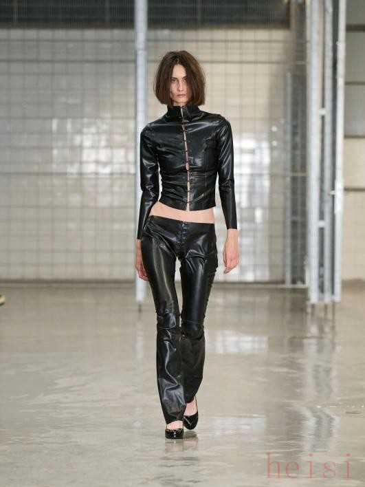 Martine Rose Spring 2026 Menswear英国品牌Martine Rose在2026春夏重新解读80年代经典裤型,采用锥形且略显修身的设计思路。其涂层皮革面料推出黑色、棕色等经典配色,融入机车元素,再将衬衫、毛衣、球衣束入直筒长裤,剪裁贴合腰臀及腿部,完美契合“去宽松”主题。