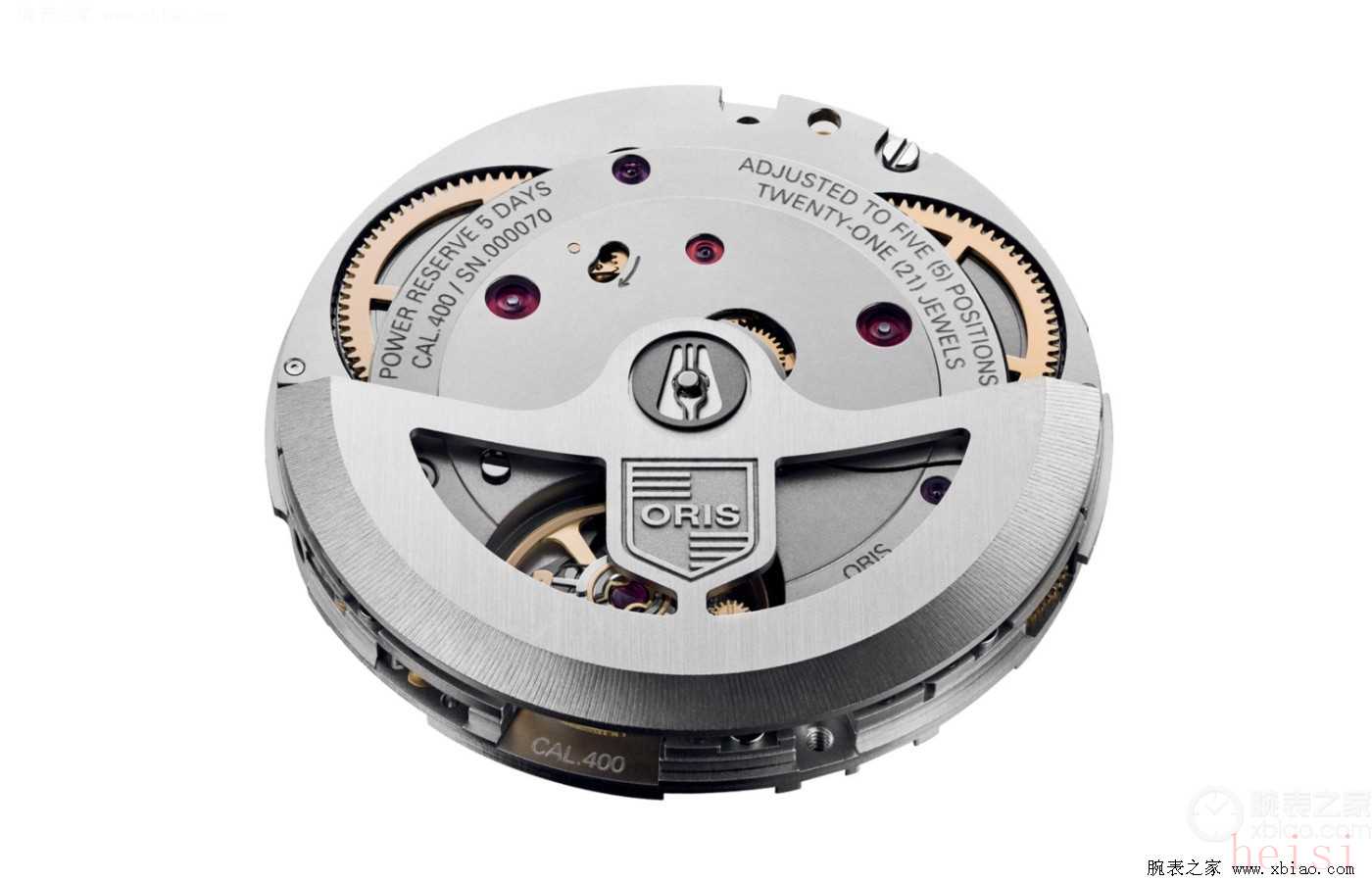 ORIS 400机芯另一亮点就是长动力,它可提供长达120小时(5天)的动力储存。为实现这个性能,豪利时配备了两个发条盒。相比硕大的单一发条盒设计,双发条盒无疑更加稳定。
